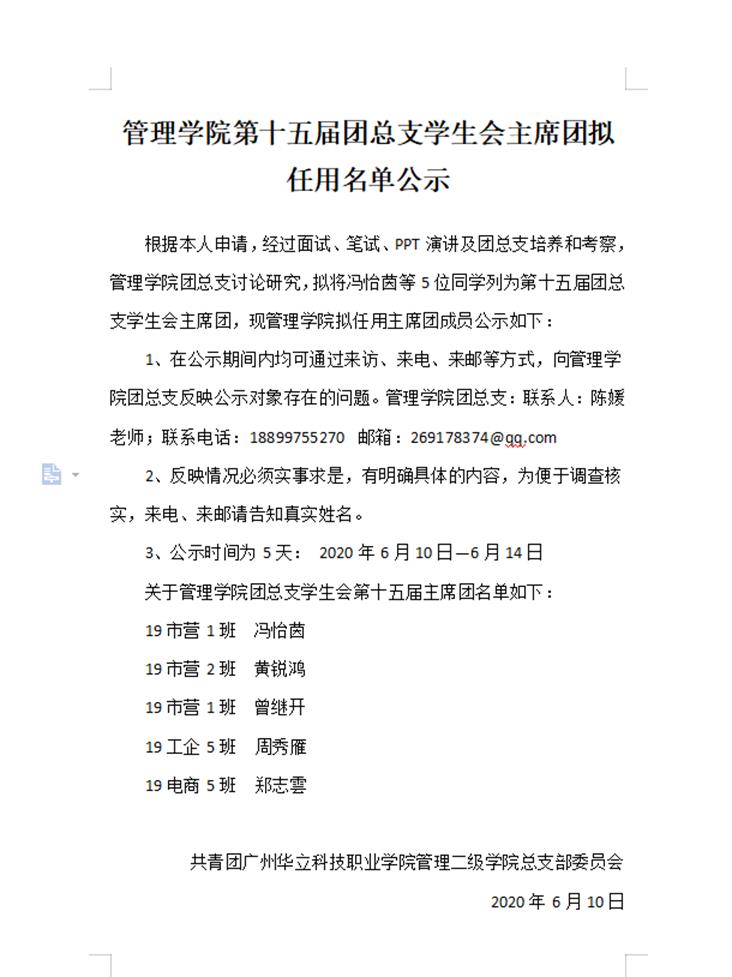 團總支學(xué)生會是學(xué)校聯(lián)系學(xué)生的橋梁和紐帶,是學(xué)校管理的助手和主力軍,團總支學(xué)生會工作的發(fā)展是學(xué)生們共同的希望。廣州華立科技職業(yè)學(xué)院管理學(xué)院團總支學(xué)生會第十五屆主席團第四輪競選于2020年6月9日晚上7點30分通過騰訊視頻會議線上舉行。
