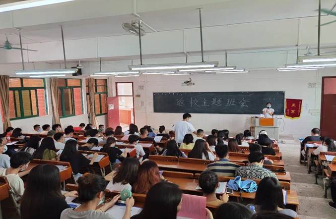 為了讓同學(xué)們注意返校后安全問題,我院18級輔導(dǎo)員召開主題班會,給我們講解了返校后需要注意的事項。