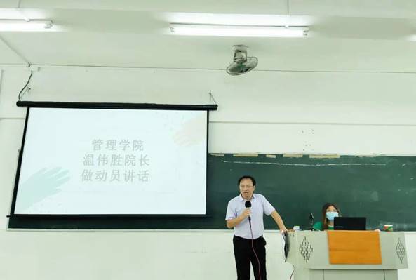 會議開始前管理學(xué)院溫偉勝院長對此次動員活動致辭,他說到:希望同學(xué)們在迎新過程中體現(xiàn)出管院的風(fēng)采和態(tài)度去迎新,讓新一屆的師弟師妹們感受到新學(xué)校的有愛氛圍,把管院此次迎新工作做到最好,為新生展示我們的熱情。