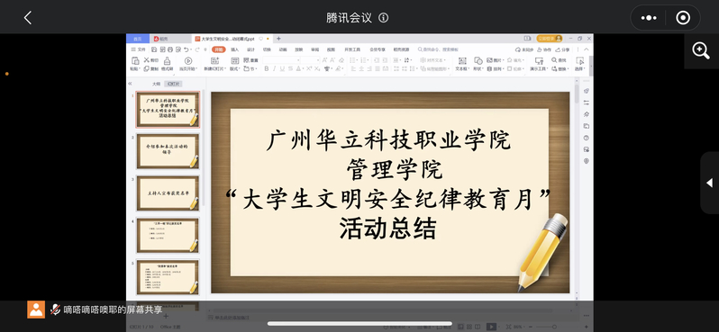 2022年4月1日晚上7:10,管理學院于線上開展文明安全紀律教育月總結(jié)大會。