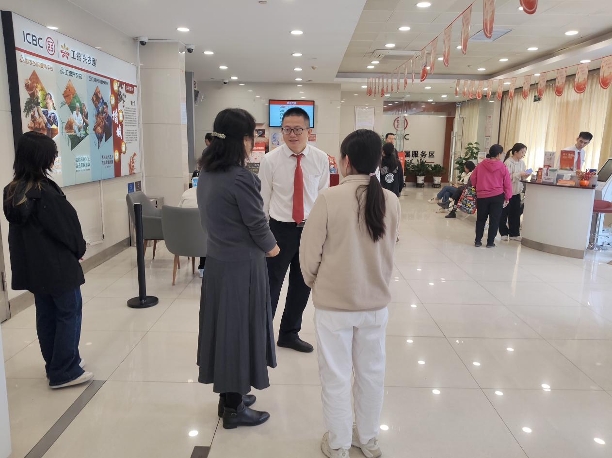 在工行增城增江支行石麗金經(jīng)理的帶領(lǐng)下,師生先后參觀了營(yíng)業(yè)大廳、自助服務(wù)區(qū)和理財(cái)咨詢區(qū)。在營(yíng)業(yè)大廳,講解人員細(xì)致拆解了叫號(hào)系統(tǒng)的運(yùn)作邏輯、現(xiàn)金與非現(xiàn)金業(yè)務(wù)窗口的分工差異,以及從客戶接待到業(yè)務(wù)辦結(jié)的全流程規(guī)范;在自助服務(wù)區(qū),通過(guò)現(xiàn)場(chǎng)演示,生動(dòng)講解了ATM機(jī)、自助終端等設(shè)備的操作方法與安全使用要點(diǎn);在理財(cái)咨詢區(qū),圍繞理財(cái)產(chǎn)品分類(lèi)、風(fēng)險(xiǎn)等級(jí)評(píng)估及客戶服務(wù)標(biāo)準(zhǔn)等內(nèi)容展開(kāi)詳細(xì)介紹,幫助學(xué)生建立對(duì)銀行業(yè)務(wù)體系的系統(tǒng)認(rèn)知。