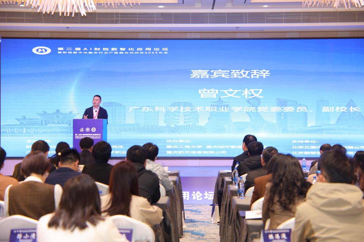 開幕式上,財稅數(shù)字化服務(wù)行業(yè)產(chǎn)教融合共同體理事長、重慶工商大學(xué)黨委常委、副校長張波和廣東科學(xué)技術(shù)職業(yè)學(xué)院黨委委員、副校長曾文權(quán)分別代表主辦方致辭,強調(diào)了人工智能與財稅數(shù)字化融合對職業(yè)教育與行業(yè)發(fā)展的重要意義,并對本次論壇推動產(chǎn)教融合、賦能人才培養(yǎng)寄予厚望。