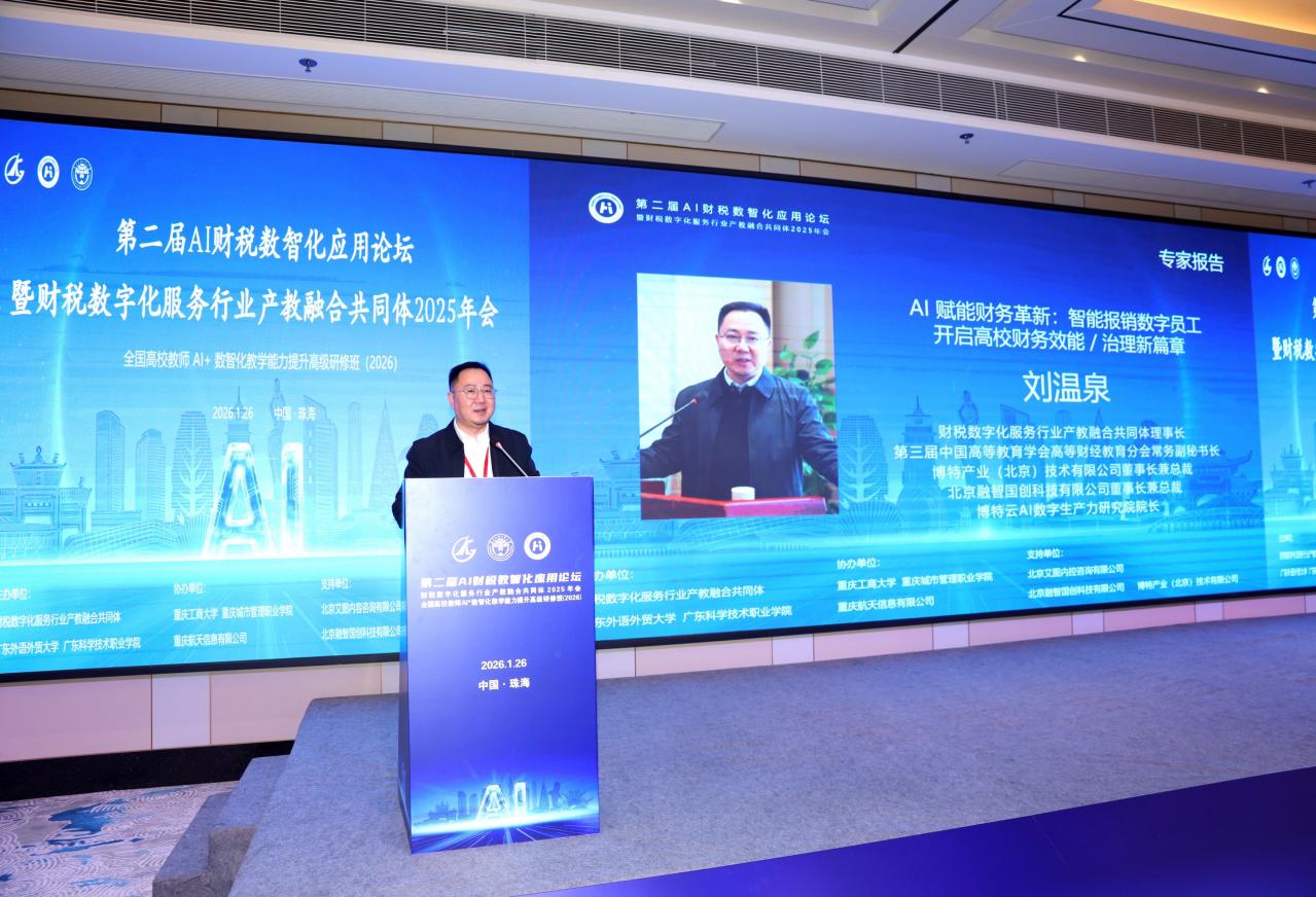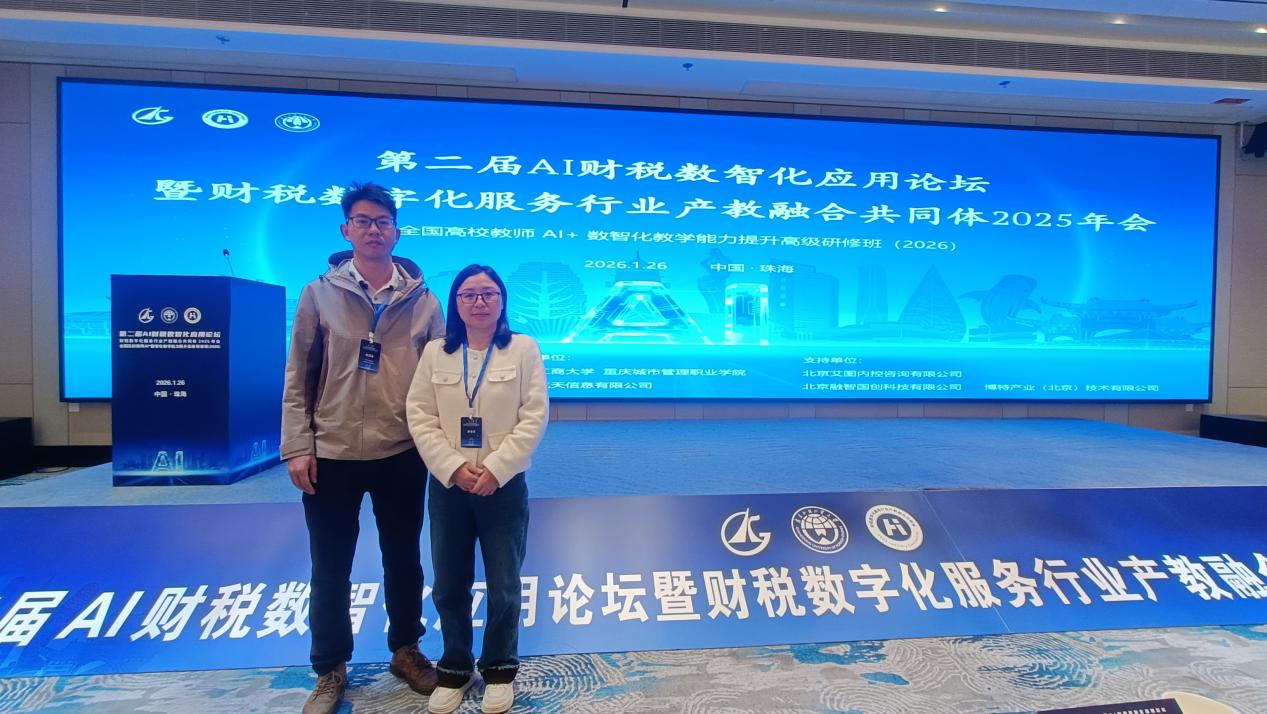 2026年1月26日,第二屆AI財稅數(shù)智化應(yīng)用論壇暨財稅數(shù)字化服務(wù)行業(yè)產(chǎn)教融合共同體2025年會在珠海成功舉辦。本次論壇由財稅數(shù)字化服務(wù)行業(yè)產(chǎn)教融合共同體、廣東外語外貿(mào)大學(xué)和廣東科學(xué)技術(shù)職業(yè)學(xué)院聯(lián)合主辦,來自全國高校、企業(yè)和研究機構(gòu)的專家學(xué)者齊聚一堂,共同探討AI與財稅數(shù)字化融合發(fā)展路徑。我校經(jīng)濟管理學(xué)院何玉冰、陳湛通兩位教師代表學(xué)校應(yīng)邀參會。