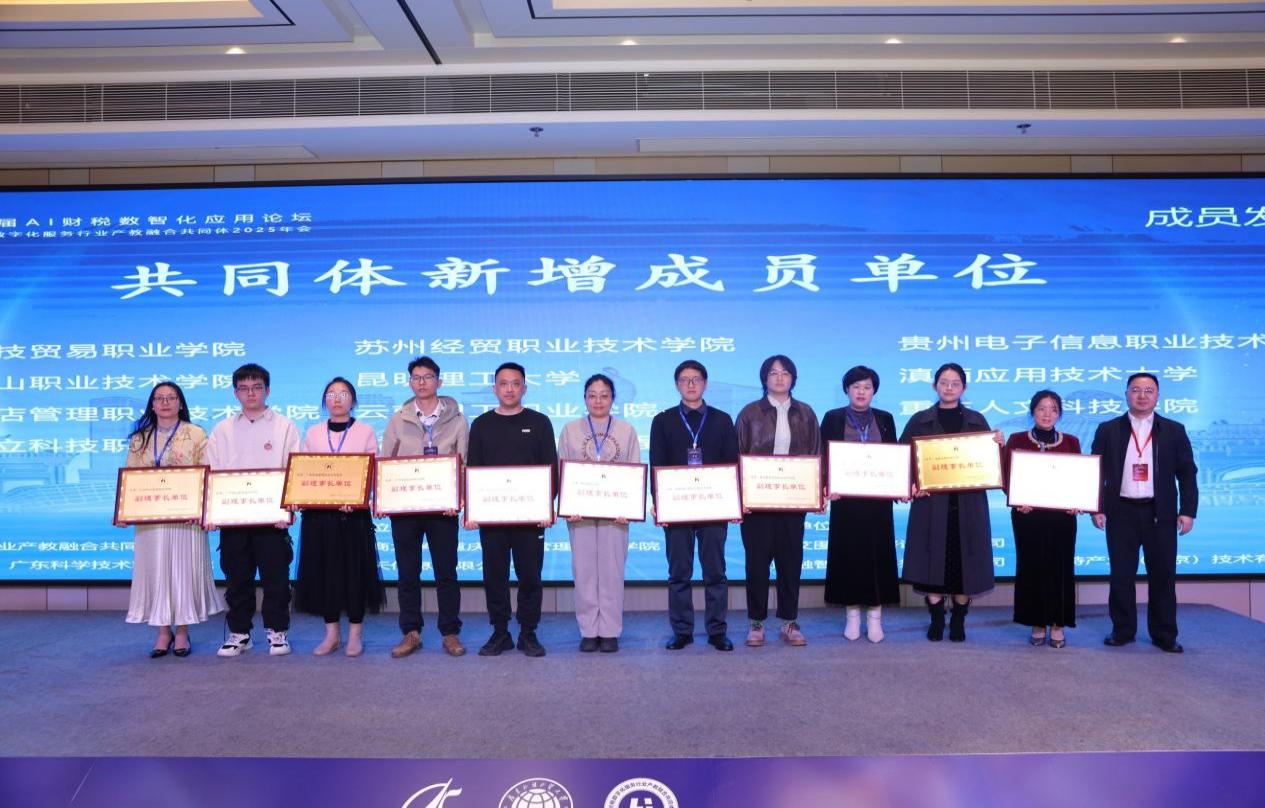 在隨后舉行的共同體年會與頒獎授牌儀式上,我校憑借在AI財稅數(shù)智化人才培養(yǎng)方面的積極探索與顯著成效,被授予“AI財稅數(shù)智化人才培養(yǎng)示范單位”。同時,經(jīng)共同體審議通過,我校正式成為“財稅數(shù)字化服務(wù)行業(yè)產(chǎn)教融合共同體副理事長單位”,兩項榮譽的獲得,標(biāo)志著我校在財稅數(shù)字化領(lǐng)域的人才培養(yǎng)與產(chǎn)教融合領(lǐng)域的實踐與影響力獲得行業(yè)高度認(rèn)可。
