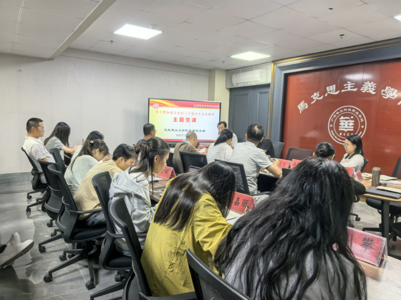 2025年10月30日,馬克思主義學院直屬黨支部在G1-314會議室開展學習貫徹黨的二十屆四中全會精神主題黨課活動。主題黨課由黨支部書記廖良初同志主持,楊玉瑞博士主講,學院全體黨員教師參加。