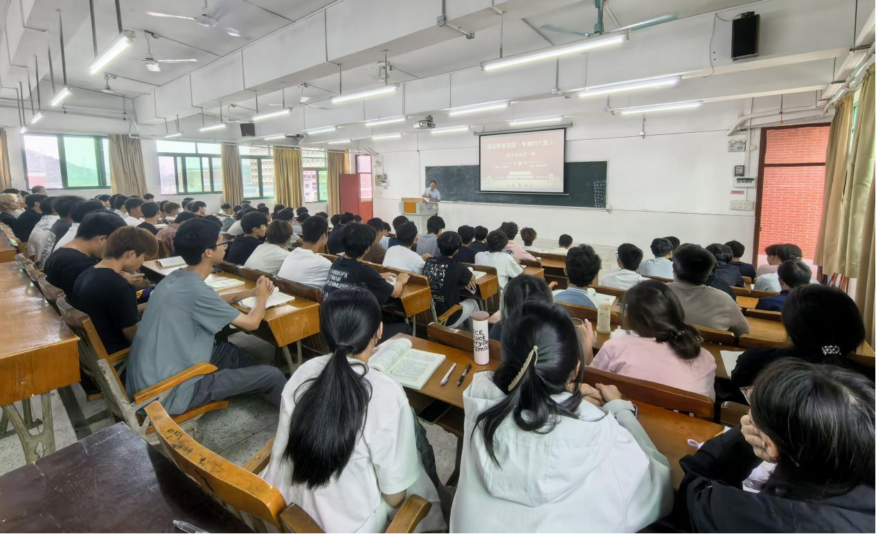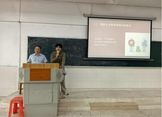廖校長強(qiáng)調(diào),職業(yè)教育是與普通教育同等重要的教育類型,是國民教育體系和人力資源開發(fā)的重要組成部分。高職畢業(yè)生占新增就業(yè)人口70%,制造業(yè)一線技術(shù)骨干80%來自高職,職業(yè)教育已成為教育強(qiáng)國的“半壁江山”,職業(yè)教育大有可為。在互動環(huán)節(jié),他提出“作為高職學(xué)生,你認(rèn)為自己在教育強(qiáng)國中能扮演什么角色”等問題,引發(fā)學(xué)生深思。他引用習(xí)近平總書記的青年寄語:“青年一代有理想、有本領(lǐng)、有擔(dān)當(dāng),國家就有前途,民族就有希望”,鼓勵學(xué)生立大志、明大德、成大才,將個人成長融入國家發(fā)展。