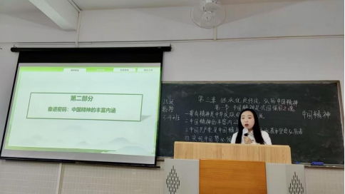 趙老師從“崇尚精神是中華民族的優(yōu)秀傳統(tǒng)”切入,精準講解了中國精神的科學概念和深刻內(nèi)涵,生動解讀了偉大創(chuàng)造精神、偉大奮斗精神、偉大團結(jié)精神與偉大夢想精神的豐富蘊涵,通過巧妙嫁接歷史典故、植入當代實踐案例,引導學生穿越時空隧道,感知中華民族精神譜系的博大厚重,理解傳承中華民族精神的歷史自覺。授課有的放矢、言之有物、情理交融,賦予原理以深刻論證,還給予說教以現(xiàn)實關(guān)照和生活溫度,讓“中國精神”真正走進學生心靈。