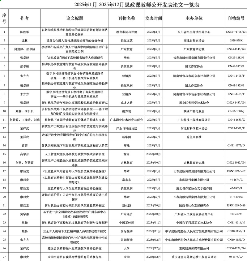 2025年度思政課教師公開發(fā)表論文一覽表