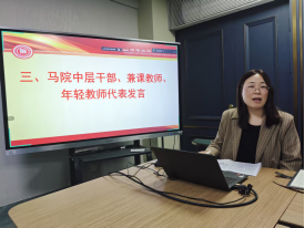 隨后,馬克思主義學院行政人事負責人李權(quán)、任課教師張卓婭、青年教師焦揚、王繼東分別以不同身份代表發(fā)言表態(tài)。大家表示要嚴格落實學院各項決策部署,深耕思政課堂教學,聚焦科研能力提升,積極參與各類思政科研項目申報,嚴把意識形態(tài)關(guān),努力完成各自崗位職責。