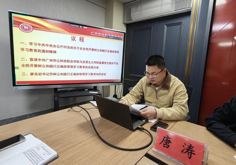 隨后,支部組織委員唐濤同志宣讀《中共廣州華立科技職業(yè)學(xué)院馬克思主義學(xué)院支部委員會(huì)關(guān)于在全院開展樹立和踐行正確政績觀學(xué)習(xí)教育的實(shí)施方案》。方案圍繞總體要求、工作專班、工作重點(diǎn)、工作要求等方面作出全面部署,明確了本次“學(xué)習(xí)教育”的覆蓋范圍、時(shí)間安排,劃定了深化學(xué)習(xí)研討、查擺問題、整改落實(shí)、建章立制、開門教育五大工作重點(diǎn),并公布了“學(xué)習(xí)教育”工作安排表。