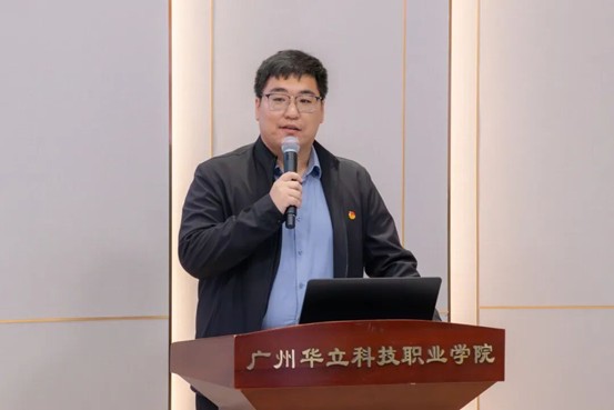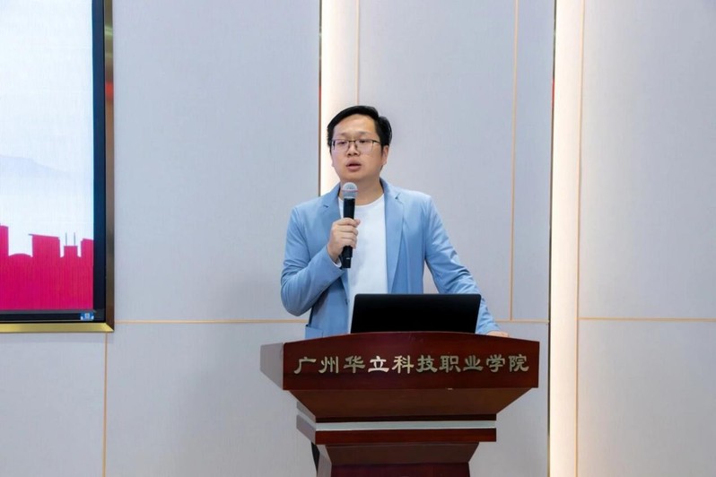 藝術(shù)與傳媒學(xué)院院長朱君代表指導(dǎo)單位發(fā)言。他全面介紹了廣州華立科技職業(yè)學(xué)院音樂表演微專業(yè)課程暨相關(guān)選修課的設(shè)置情況,著重介紹了陳志偉、周婧兩位指導(dǎo)老師的專業(yè)背景與豐富教學(xué)經(jīng)驗,并對兩大藝術(shù)團體后續(xù)的核心工作進行了部署,涵蓋日常訓(xùn)練、專項集訓(xùn)、展演賽事等,為團體規(guī)范化、高質(zhì)量發(fā)展明確了路徑,同時也表達了指導(dǎo)單位將全程護航團隊建設(shè)、助力師生藝術(shù)素養(yǎng)提升的堅定決心。