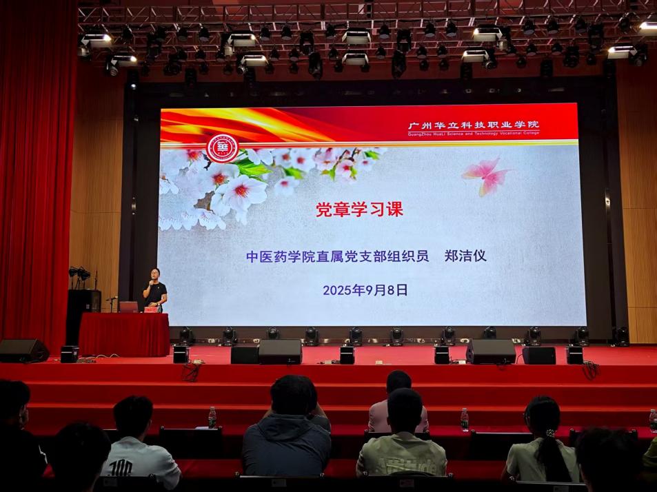 為進(jìn)一步加強(qiáng)新生思想政治引領(lǐng),幫助新生樹立正確的入黨動(dòng)機(jī),嚴(yán)格規(guī)范黨員發(fā)展流程,切實(shí)把好黨員發(fā)展的“入口關(guān)”,9月11日下午,中醫(yī)藥學(xué)院面向云浮校區(qū)2025級(jí)新生精心組織了一場(chǎng)入黨知識(shí)專項(xiàng)講座。本次講座由中醫(yī)藥學(xué)院直屬黨支部組織委員鄭潔儀主講。學(xué)院副院長(zhǎng)張志勇、陳耀輝及學(xué)院全體老師參加。