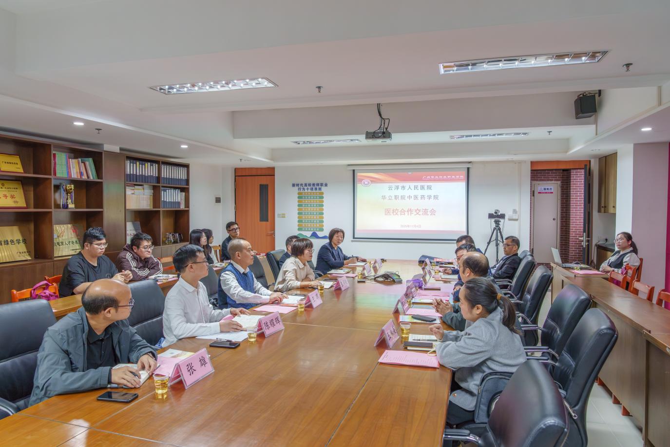 為進(jìn)一步深化醫(yī)校合作,推動(dòng)醫(yī)學(xué)教育與臨床實(shí)踐深度融合,培養(yǎng)更多符合行業(yè)需求的高素質(zhì)醫(yī)學(xué)人才,2025年11月4日下午云浮市人民醫(yī)院院長(zhǎng)吳志華、副院長(zhǎng)莫必華、醫(yī)務(wù)科副科長(zhǎng)王振英、事業(yè)發(fā)展部主任陳 濤、醫(yī)務(wù)科袁興華等一行蒞臨我校,就醫(yī)校合作事宜開展專題交流。我校黨委副書記、副校長(zhǎng)王洪艷熱情接待了來訪嘉賓,隨后醫(yī)校雙方在學(xué)校會(huì)議室開展合作交流座談會(huì),出席本次交流的校方代表有中醫(yī)藥學(xué)院院長(zhǎng)王暉、副院長(zhǎng)張志勇和陳耀輝、教務(wù)處副處長(zhǎng)李濤、招就處副主任張雄以及中醫(yī)藥學(xué)院相關(guān)老師。