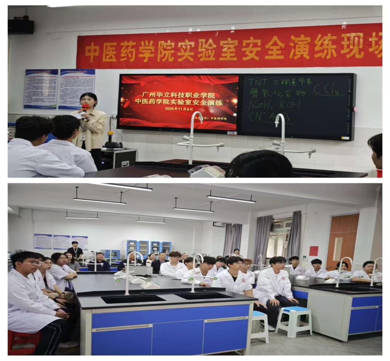 本次實(shí)驗(yàn)室安全演練于2025年11月6日在西二教學(xué)樓藥物制劑實(shí)驗(yàn)室舉行,蒞臨本次實(shí)驗(yàn)室安全演練的領(lǐng)導(dǎo)嘉賓有我校副校長陳顯強(qiáng)、實(shí)訓(xùn)中心主任張磊、學(xué)院院長王暉和副院長王澤秀、曾祥彪及相關(guān)老師。