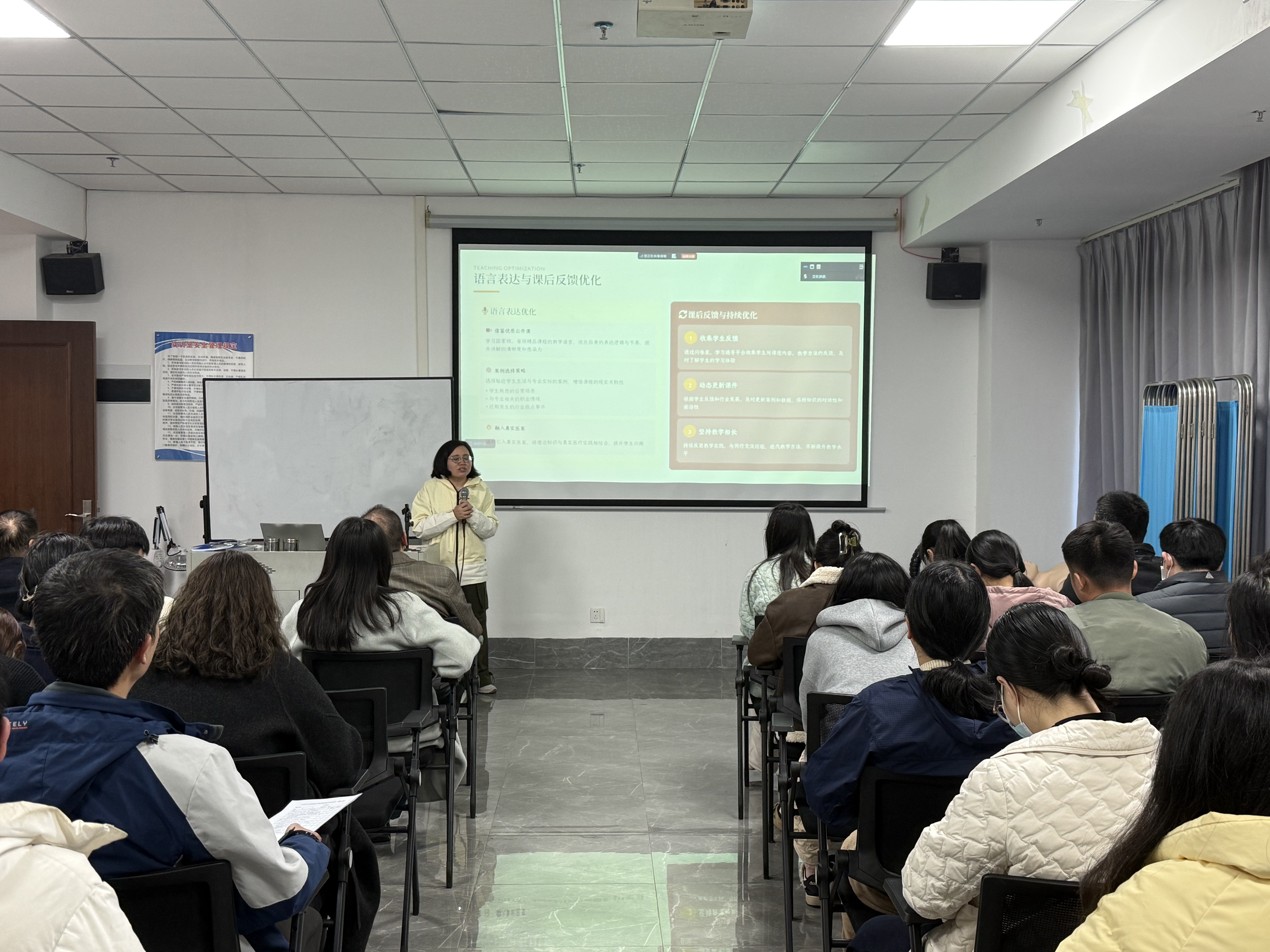 為助力全院教師提升教學(xué)能力、推動(dòng)課堂教學(xué)革新,2026年1月26日,我院專(zhuān)職教師董穎敏老師以“從備課到上課的實(shí)用策略”為主題,開(kāi)展了一場(chǎng)系統(tǒng)深入、干貨滿滿的教學(xué)經(jīng)驗(yàn)分享會(huì)。分享會(huì)圍繞 “備課篇、上課篇、實(shí)用教學(xué)工具箱、角色轉(zhuǎn)化與心態(tài)建設(shè)” 四大核心模塊,為與會(huì)教師呈現(xiàn)了一套完整可操作的教學(xué)提升方案,現(xiàn)場(chǎng)學(xué)習(xí)氛圍濃厚,反響熱烈。