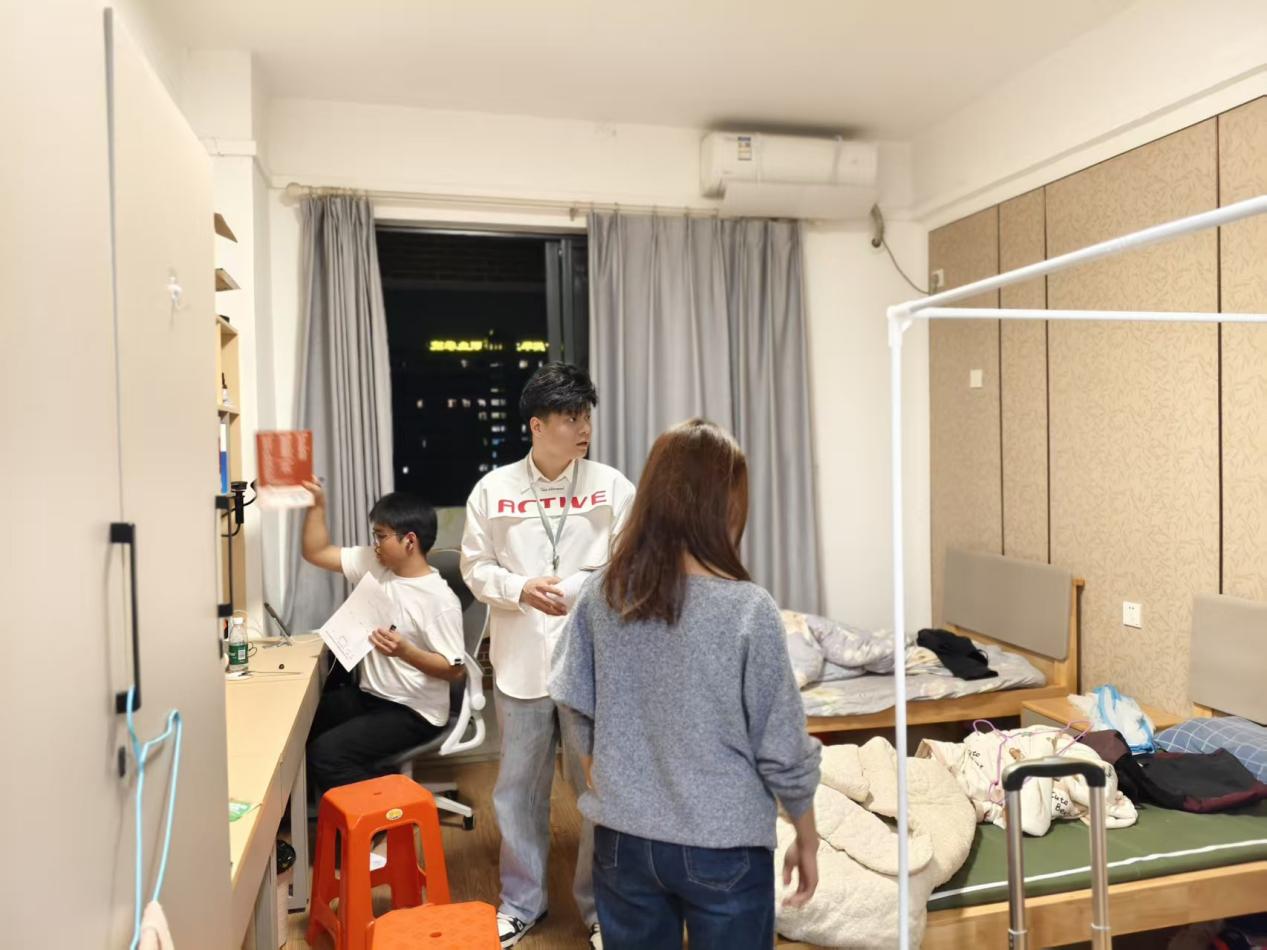 走訪過(guò)程中,學(xué)管主任與輔導(dǎo)員們逐層逐寢、深入細(xì)致地查看宿舍環(huán)境,與返校學(xué)生親切交流,細(xì)致詢問(wèn)大家的假期生活、返校行程、新學(xué)期學(xué)習(xí)規(guī)劃等情況,耐心傾聽(tīng)學(xué)生在住宿、學(xué)習(xí)、生活中遇到的問(wèn)題與訴求,現(xiàn)場(chǎng)答疑解惑、紓解情緒,讓同學(xué)們真切感受到學(xué)校的關(guān)懷與溫暖,快速消除假期慵懶狀態(tài),融入校園生活。