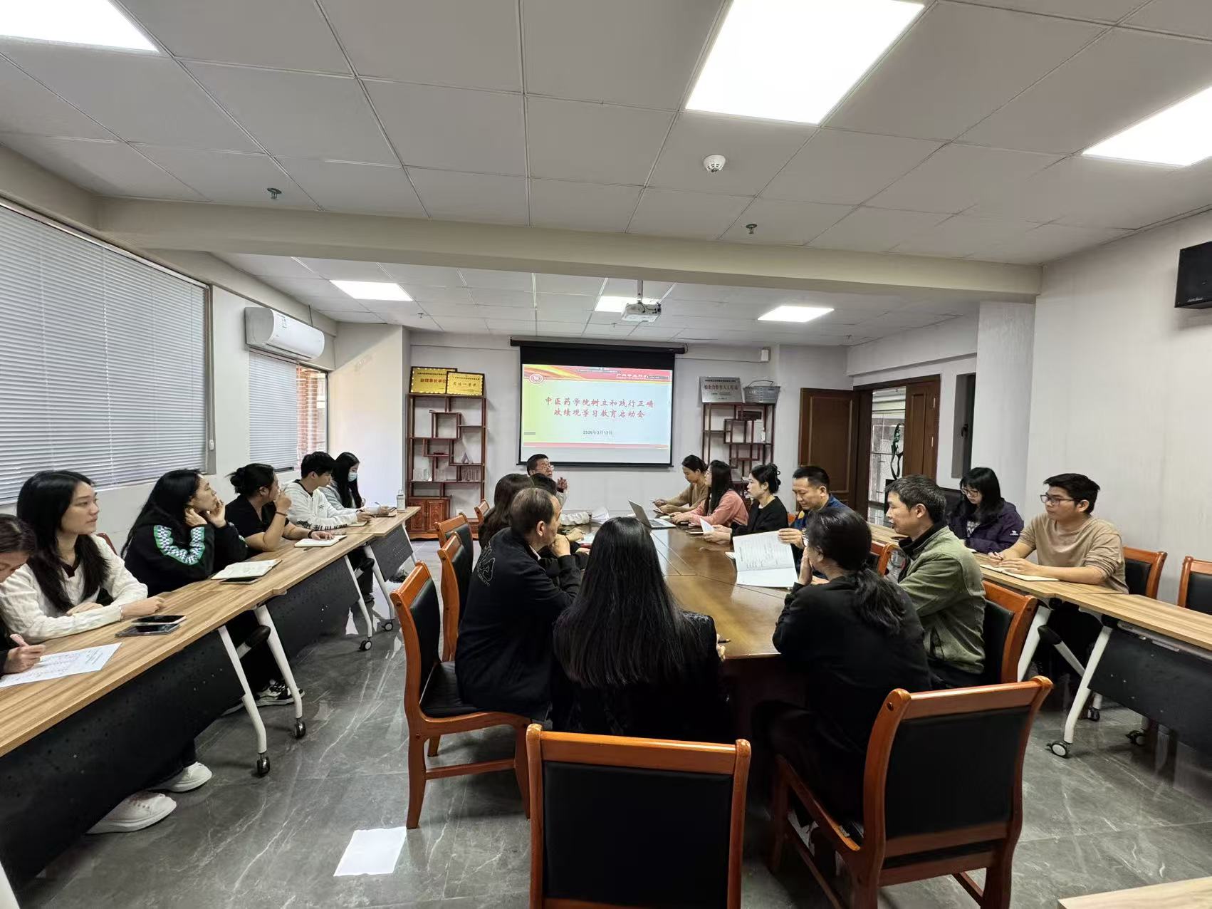 3月12日上午,中醫(yī)藥學(xué)院直屬黨支部在G1-212會(huì)議室召開樹立和踐行正確政績(jī)觀學(xué)習(xí)教育啟動(dòng)會(huì)。學(xué)院廣州校區(qū)教師黨員線下參會(huì),學(xué)生黨員及云浮校區(qū)教師黨員通過(guò)線上形式同步參會(huì),學(xué)院院長(zhǎng)王暉出席會(huì)議,會(huì)議由直屬黨支部書記曾祥彪主持。