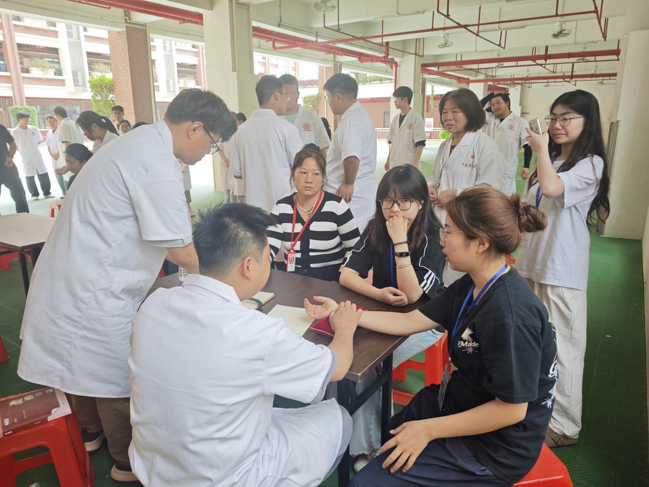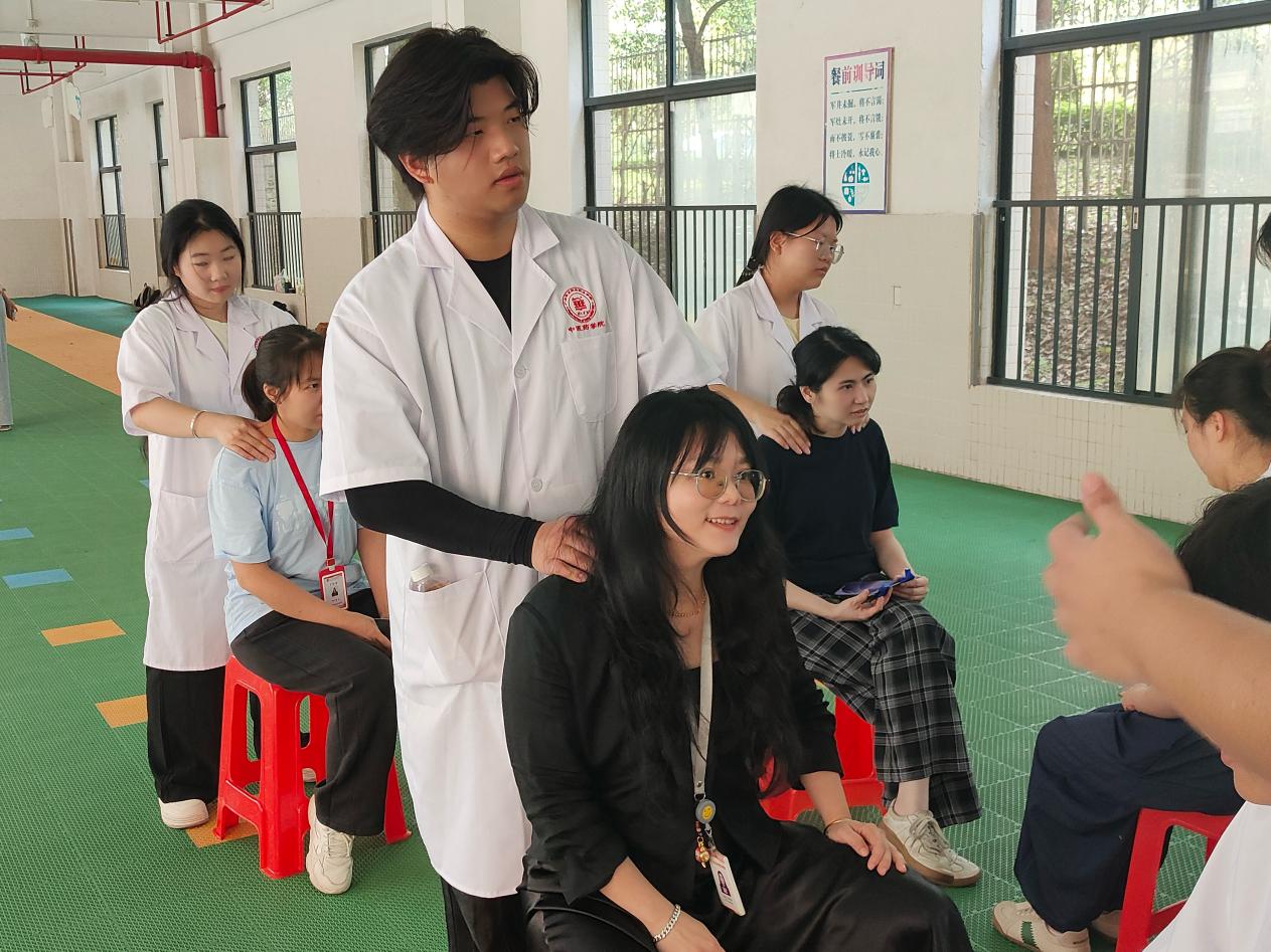 活動現(xiàn)場分設(shè)中醫(yī)問診、推拿調(diào)理、血壓測量等便民服務專區(qū)。學院師生團隊為中英文教職工把脈問診、推拿舒緩,結(jié)合中醫(yī)辨證理論,量身定制個性化健康調(diào)養(yǎng)方案;同時面向在校學生開展八段錦示范教學,用專業(yè)的中醫(yī)技藝、暖心的志愿關(guān)懷,為青少年身心健康保駕護航,筑牢校園健康防線。