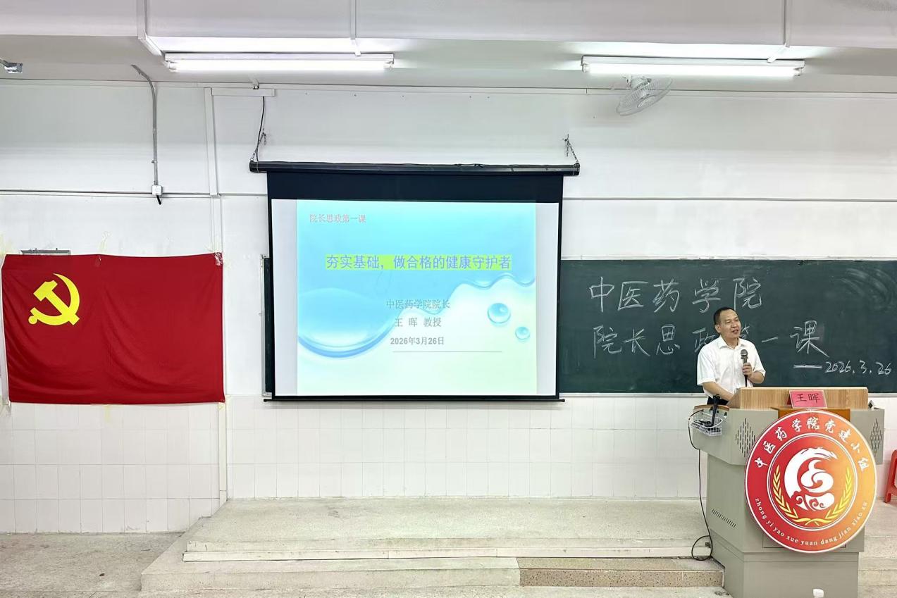 為深入貫徹黨的二十大及二十屆四中全會(huì)精神,落實(shí)“健康優(yōu)先發(fā)展戰(zhàn)略”,2026年3月26日中醫(yī)藥學(xué)院院長王暉教授以“夯實(shí)基礎(chǔ),做合格的健康守護(hù)者”為主題,在圖書館304教室為學(xué)院師生開講新學(xué)期思政第一課。課程緊密圍繞國家衛(wèi)生健康工作方針,深度結(jié)合中醫(yī)藥特色優(yōu)勢(shì),引導(dǎo)青年學(xué)子堅(jiān)定專業(yè)信念、筑牢專業(yè)根基、厚植為民情懷,立志成為新時(shí)代人民健康的忠誠守護(hù)者。