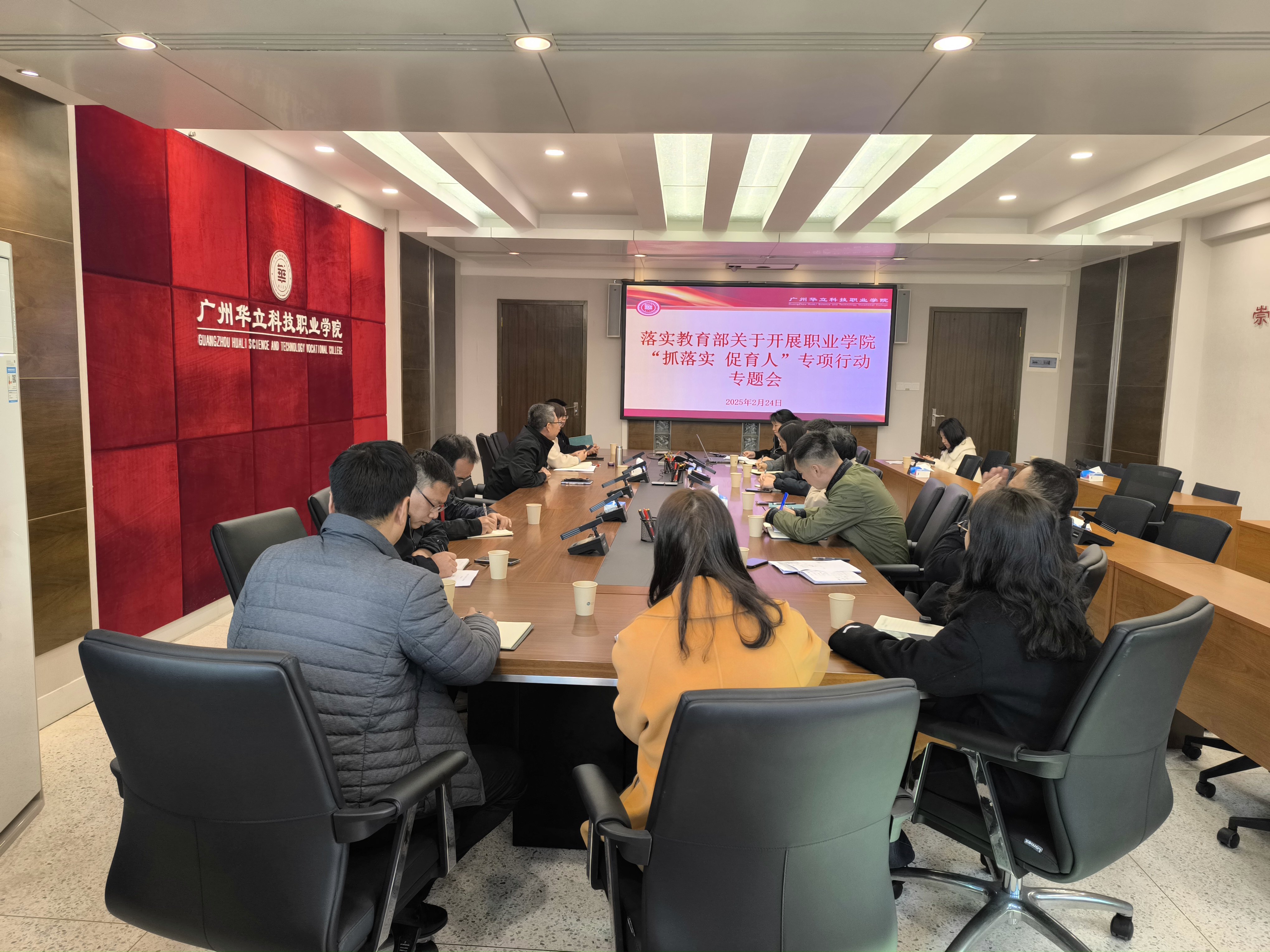 會(huì)議進(jìn)一步學(xué)習(xí)了《教育部辦公廳關(guān)于開展職業(yè)學(xué)校“抓落實(shí) 促育人”專項(xiàng)行動(dòng)的通知》(教職成廳函〔2024〕22號(hào))文件,審議了《廣州華立科技職業(yè)學(xué)院“抓落實(shí) 促育人”專項(xiàng)行動(dòng)任務(wù)調(diào)度表》。會(huì)議強(qiáng)調(diào),一要統(tǒng)一思想,提高認(rèn)識(shí)。各職能部門要深刻認(rèn)識(shí)開展“抓落實(shí) 促育人”專項(xiàng)行動(dòng)的重要意義,要以高度的責(zé)任感和使命感,落實(shí)黨和國(guó)家的工作部署、基本要求,細(xì)化工作方案,緊抓工作要求落實(shí),補(bǔ)短板、堵漏洞、強(qiáng)弱項(xiàng),切實(shí)提升育人質(zhì)量。二要對(duì)標(biāo)對(duì)表,落實(shí)落細(xì)。相關(guān)職能部門要以此次專項(xiàng)行動(dòng)為契機(jī),定期梳理黨和國(guó)家對(duì)教育教學(xué)、學(xué)校管理的工作要求,形成任務(wù)清單;對(duì)照發(fā)現(xiàn)工作不足,完善問(wèn)題清單;提出改進(jìn)措施,制訂措施清單,要圍繞重點(diǎn)任務(wù)和觀測(cè)點(diǎn),把責(zé)任壓實(shí)到具體部門、具體人員。要健全用好“三張清單”的工作機(jī)制,把育人要求落實(shí)落細(xì),確保工作見行見效。三要善于學(xué)習(xí)總結(jié),完善規(guī)章制度。要善于學(xué)習(xí)借鑒兄弟院校好的做法,及時(shí)總結(jié)學(xué)?!白ヂ鋵?shí) 促育人”專項(xiàng)行動(dòng)開展情況,將好的經(jīng)驗(yàn)做法以制度形式固定下來(lái),形成長(zhǎng)效機(jī)制。