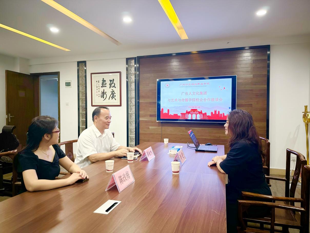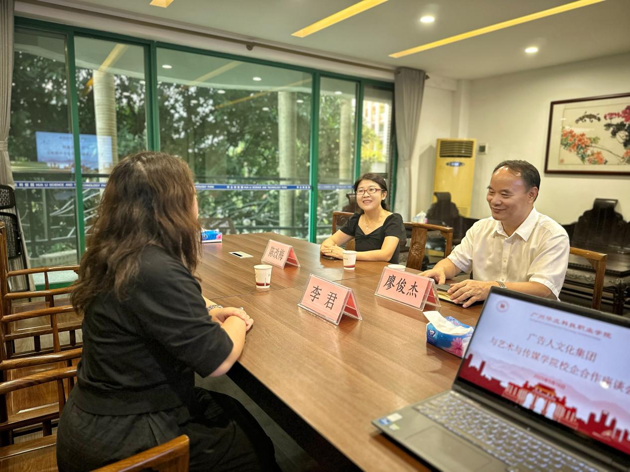 2025年9月16日,廣告人文化集團(tuán)(天津)有限公司總裁辦公室主任李君一行到訪廣州華立科技職業(yè)學(xué)院,與校方就深化校企合作、推動產(chǎn)教融合展開座談交流。廣州華立科技職業(yè)學(xué)院校長廖俊杰、藝術(shù)與傳媒學(xué)院黨總支書記陳改梅等出席本次會議。