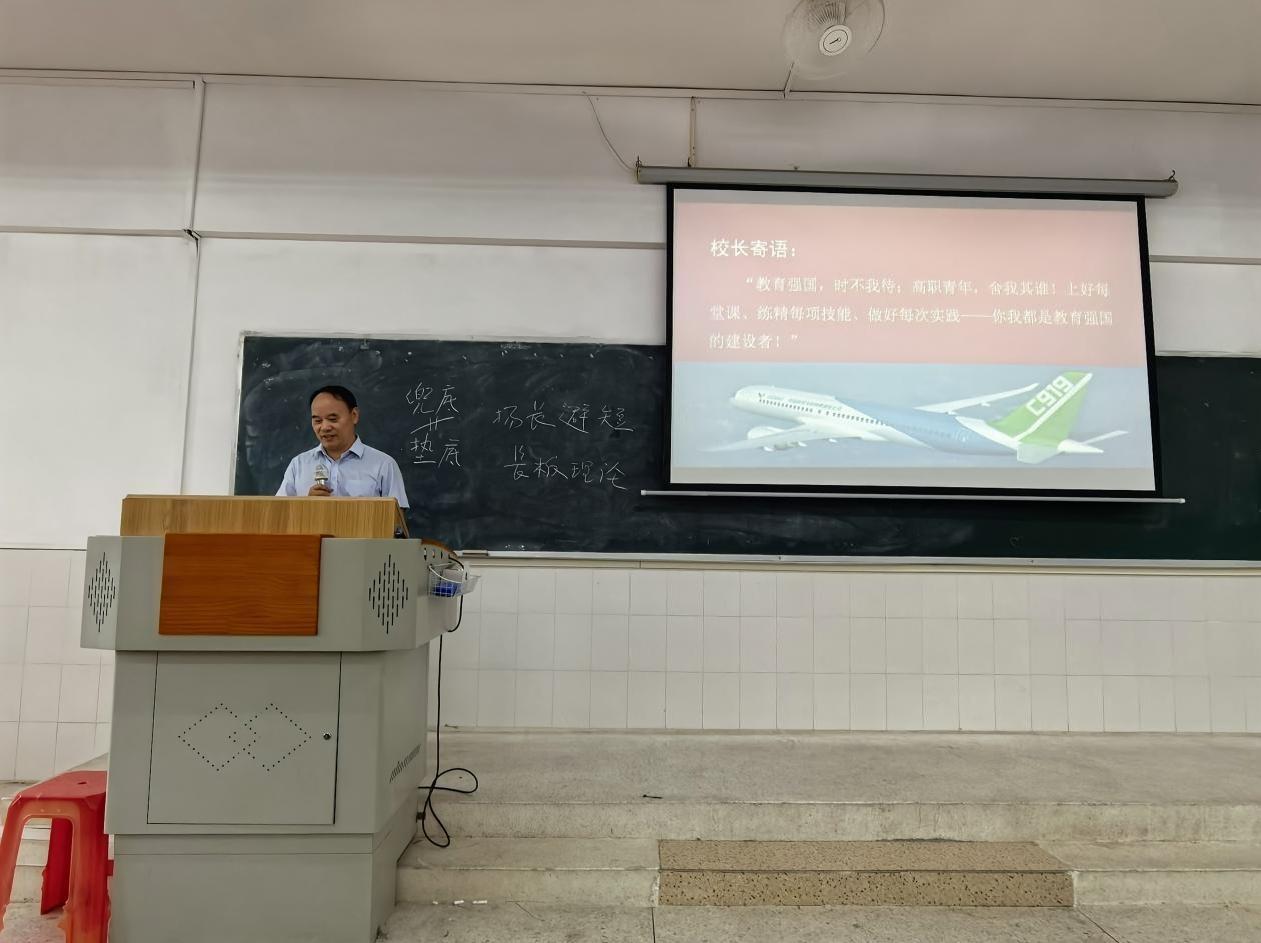 廖校長強(qiáng)調(diào),職業(yè)教育是與普通教育同等重要的教育類型,是國民教育體系和人力資源開發(fā)的重要組成部分。高職畢業(yè)生占新增就業(yè)人口70%,制造業(yè)一線技術(shù)骨干80%來自高職,職業(yè)教育已成為教育強(qiáng)國的“半壁江山”,職業(yè)教育大有可為。在互動(dòng)環(huán)節(jié),他提出“作為高職學(xué)生,你認(rèn)為自己在教育強(qiáng)國中能扮演什么角色”等問題,引發(fā)學(xué)生深思。他引用習(xí)近平總書記的青年寄語:“青年一代有理想、有本領(lǐng)、有擔(dān)當(dāng),國家就有前途,民族就有希望”,鼓勵(lì)學(xué)生立大志、明大德、成大才,將個(gè)人成長融入國家發(fā)展。