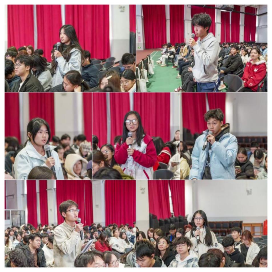 活動(dòng)現(xiàn)場(chǎng)設(shè)置了三次互動(dòng)環(huán)節(jié),師生們或提問(wèn)或分享,思想火花不斷迸發(fā)。從人性的復(fù)雜到鄉(xiāng)土的守望,從草木的哲思到歷史的回響,每一次交流都是智慧的深度碰撞。