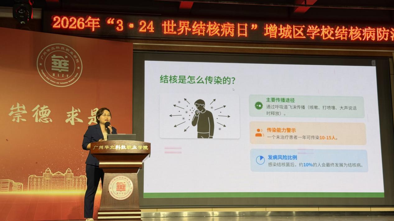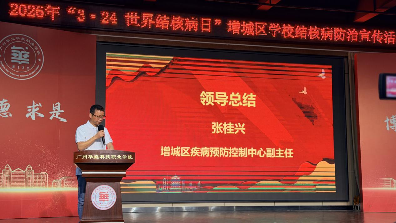 為深入貫徹落實(shí)國(guó)家關(guān)于結(jié)核病防治工作的部署要求,進(jìn)一步提升師生健康素養(yǎng),營(yíng)造健康安全的校園環(huán)境,2026年3月23日下午15:00,廣州華立科技職業(yè)學(xué)院在圖書(shū)館八樓隆重舉行2026年“3·24世界結(jié)核病日”增城區(qū)學(xué)校結(jié)核病防治宣講活動(dòng)。大會(huì)以“結(jié)核病預(yù)防”為主題,增城區(qū)疾控中心、廣州醫(yī)科大學(xué)附屬第四醫(yī)院、廣州市增城區(qū)增江街社區(qū)衛(wèi)生服務(wù)中心、廣東省華立技師學(xué)院、廣州市增城區(qū)樂(lè)眾社會(huì)工作服務(wù)中心及學(xué)校師生代表共同出席本次活動(dòng)。