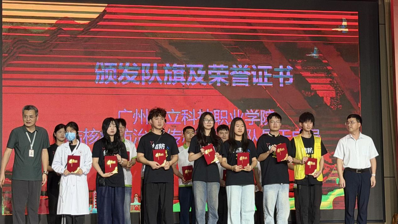 在隨后的頒發(fā)儀式上,區(qū)疾控中心領(lǐng)導(dǎo)與校領(lǐng)導(dǎo)共同為志愿服務(wù)隊(duì)頒發(fā)隊(duì)旗及志愿服務(wù)榮譽(yù)證書(shū),并為指導(dǎo)老師張劍鋒、陳勝軍、何志斌、楊靈鼎四位指導(dǎo)老師頒發(fā)證書(shū),充分肯定他們?cè)诮Y(jié)核病防治宣傳教育工作中的積極貢獻(xiàn)。隨后,區(qū)疾控中心領(lǐng)導(dǎo)向?qū)W校移交結(jié)核病防治“宣傳物料”。
