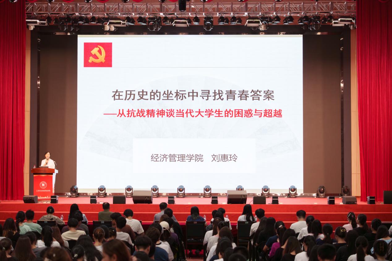 10月13日下午,經(jīng)濟(jì)管理學(xué)院黨總支書記、院長劉惠玲以《在歷史的坐標(biāo)中尋找青春答案——從抗戰(zhàn)精神談當(dāng)代大學(xué)生的困惑與超越》為題,為經(jīng)管學(xué)院云浮校區(qū)全體新生講授“思政第一課”。