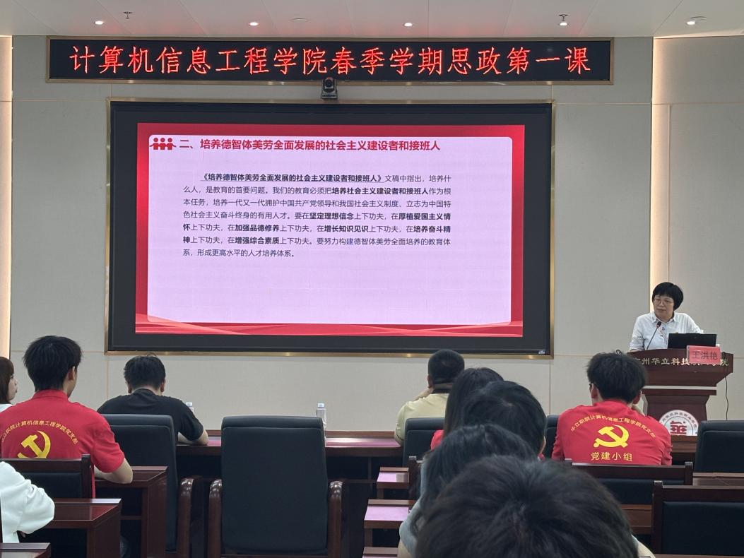 為深入學習貫徹習近平總書記關于青年工作的重要思想,引導廣大青年堅定理想信念、勇?lián)鷷r代使命,3月25日下午,在圖書館104會議室,學校黨委副書記、副校長王洪艷以“把青春播撒在民族復興的征程上”為主題,為計算機信息工程學院師生帶來一堂主題鮮明、內涵豐富的思政第一課。
