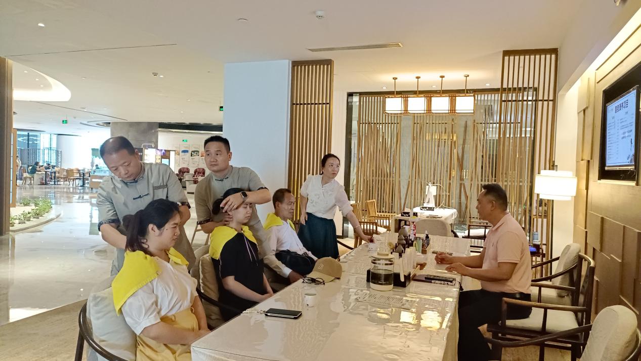 企業(yè)技術骨干現(xiàn)場演示了中醫(yī)靶向推拿技法,通過精準穴位的刺激、精油的應用與手法的調理,展示了中醫(yī)特色療法的獨特優(yōu)勢。教師代表積極參與互動,親身體驗傳統(tǒng)技藝與現(xiàn)代健康理念的結合。