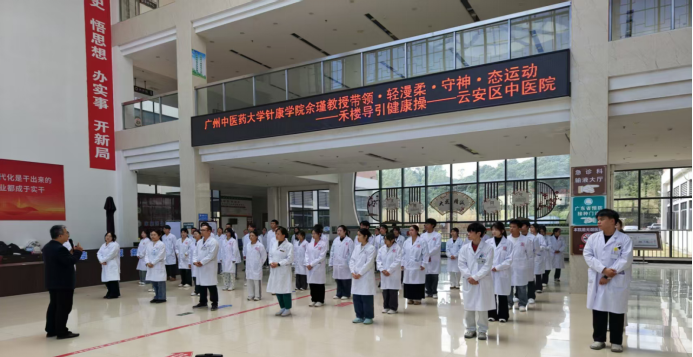 活動伊始,云安區(qū)中醫(yī)院敖威院長對師生們的到來表示熱烈歡迎,并介紹了健康操在中醫(yī)養(yǎng)生保健中的實際應(yīng)用價值。他指出:“傳統(tǒng)導(dǎo)引功法是中醫(yī)文化的重要組成部分,希望通過此次交流,師生們能在親身體驗中感受中醫(yī)養(yǎng)生的智慧,將健康理念融入日常學(xué)習(xí)與生活?!?/span>