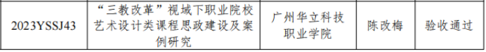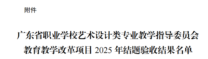 近日,依據(jù)廣東省職業(yè)學(xué)校藝術(shù)設(shè)計(jì)類專業(yè)教學(xué)指導(dǎo)委員會發(fā)布的《廣東省職業(yè)學(xué)校藝術(shù)設(shè)計(jì)類專業(yè)教學(xué)指導(dǎo)委員會2022-2023年度教育教學(xué)改革項(xiàng)目2025年結(jié)題驗(yàn)收結(jié)果的通知》(粵職藝術(shù)設(shè)計(jì)教指委〔2025〕5號),我校傳來喜訊:由馬俊教授主持的《非遺藝術(shù)價值發(fā)現(xiàn)與服務(wù)大眾相關(guān)問題研究——以廣州欖雕為例》(項(xiàng)目編號:2022YSSJ65)、吳韻怡副教授主持的《數(shù)字化技術(shù)對高職藝術(shù)類專業(yè)學(xué)生在線學(xué)習(xí)效果的影響》(項(xiàng)目編號:2022YSSJ16)、黎映如副教授主持的《基于1+X證書制度的藝術(shù)設(shè)計(jì)專業(yè)“崗課賽證”融通的實(shí)踐探索》(項(xiàng)目編號:2022YSSJ72)、陳改梅副教授主持的《“三教改革”視域下職業(yè)院校藝術(shù)設(shè)計(jì)類課程思政建設(shè)及案例研究》(項(xiàng)目編號:2023YSSJ43)、鄭黎明副教授主持的《3D打印技術(shù)融入三維動畫設(shè)計(jì)課程教學(xué)應(yīng)用研究》(項(xiàng)目編號:2023YSSJ44)、宋依謎副教授主持的《鄉(xiāng)村振興背景下農(nóng)業(yè)與地方文化融合的農(nóng)產(chǎn)品包裝設(shè)計(jì)研究》(項(xiàng)目編號:2023YSSJ45)、馬英超副教授主持的《新媒體語境下高職院校“非遺”技藝教學(xué)融入社會服務(wù)的實(shí)踐研究》(項(xiàng)目編號:2023YSSJ46)這7項(xiàng)教育教學(xué)改革項(xiàng)目均圓滿通過結(jié)題驗(yàn)收。廣州華立科技職業(yè)學(xué)院在此次教改浪潮中斬獲豐碩成果,在數(shù)字化教學(xué)、非遺傳承、產(chǎn)教融合等多個關(guān)鍵領(lǐng)域交出了一份令人眼前一亮的創(chuàng)新答卷,為藝術(shù)設(shè)計(jì)類職業(yè)教育的高質(zhì)量發(fā)展注入了源源不斷的強(qiáng)勁動力。