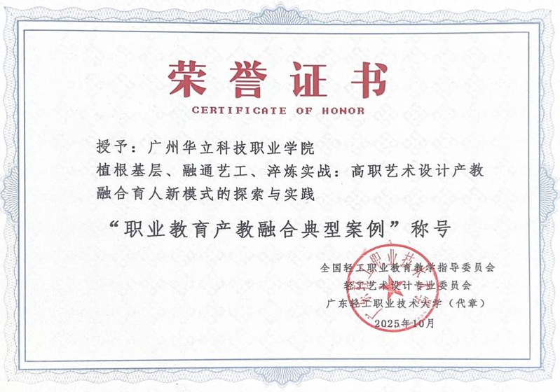 此次研討會(huì)是華立職院在藝術(shù)設(shè)計(jì)教育創(chuàng)新和產(chǎn)教融合方面邁出的重要一步。經(jīng)全國輕工藝術(shù)設(shè)計(jì)專業(yè)委員會(huì)和共同體專家評(píng)審:由馬俊、肖釗俊、沈泓睿、王渡讀團(tuán)隊(duì)制作的紀(jì)錄片榮獲中國大學(xué)生廣告藝術(shù)學(xué)院獎(jiǎng)2025年“筑夢產(chǎn)教·校長印記”賽項(xiàng)“金獎(jiǎng)”;華立職院產(chǎn)教融合案例“植根基層、融通藝工、淬煉實(shí)戰(zhàn):高職藝術(shù)設(shè)計(jì)產(chǎn)教融合育人新模式的探索與實(shí)踐”榮獲“產(chǎn)教融合典型案例”;華立職院藝術(shù)與傳媒學(xué)院黨總支書記陳改梅、就業(yè)主任黎映如獲聘“全國輕工藝術(shù)設(shè)計(jì)專委會(huì)智庫專家”;華立職院“冠岳宅吉美項(xiàng)目班”產(chǎn)教融合案例,正式載入《2025年中國廣告年鑒》,以彰顯其行業(yè)價(jià)值與引領(lǐng)意義;學(xué)校獲評(píng)創(chuàng)意星大學(xué)生實(shí)踐人才培育工程-廣州華立科技職業(yè)學(xué)院網(wǎng)易傳媒新媒體人才孵化計(jì)劃實(shí)訓(xùn)單位。
