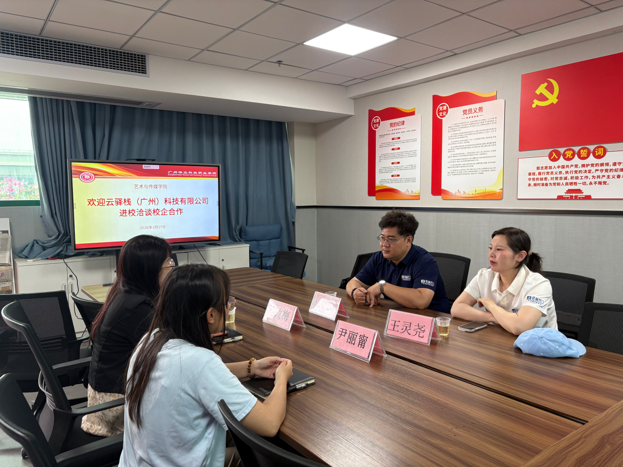 為深化產(chǎn)教融合、筑牢實習(xí)實踐平臺,助力學(xué)生職業(yè)能力提升,3月27日,云驛棧(廣州)科技有限公司市場部總監(jiān)劉樺、人力資源部主管王靈堯一行蒞臨我校藝術(shù)與傳媒學(xué)院,就校企合作及學(xué)生實習(xí)工作展開深度洽談。藝傳學(xué)院黨總支書記兼副院長陳改梅、教科研辦公室副主任尹麗甯、校外教學(xué)干事李子接待并出席座談會,雙方圍繞實習(xí)實訓(xùn)、人才培養(yǎng)等核心議題達(dá)成初步合作意向。