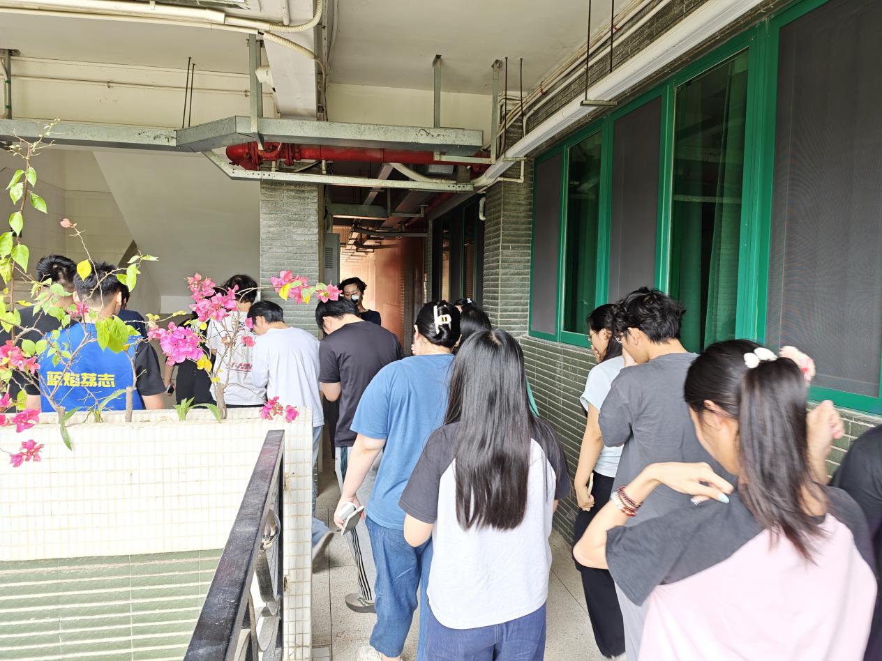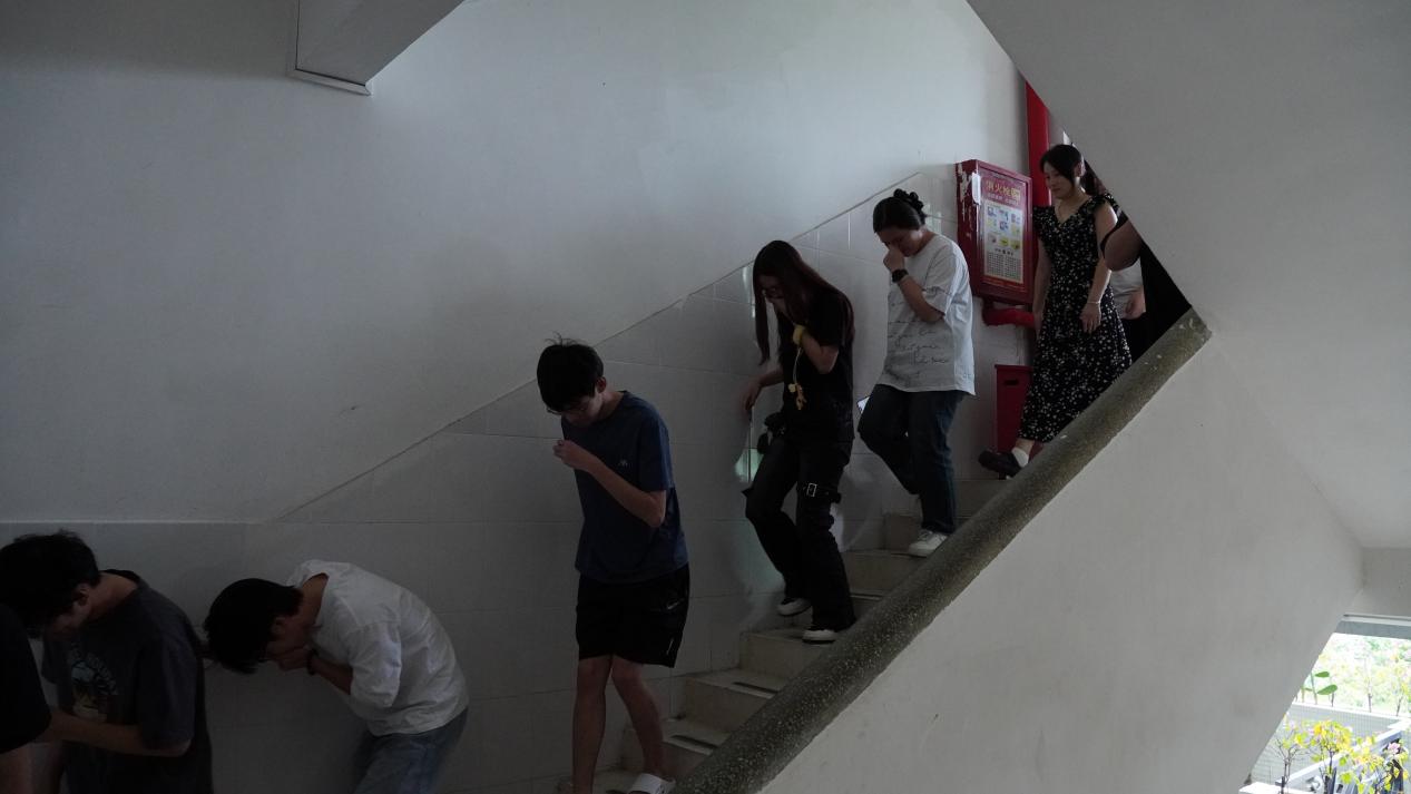 學(xué)生干部協(xié)助任課老師,引導(dǎo)全班學(xué)生沿預(yù)定路線(西側(cè)樓梯)快速、有序撤離,到達(dá)“西三教學(xué)樓前廣場”指定集合點(diǎn)。老師清點(diǎn)人數(shù),確保所有人員安全撤離。
