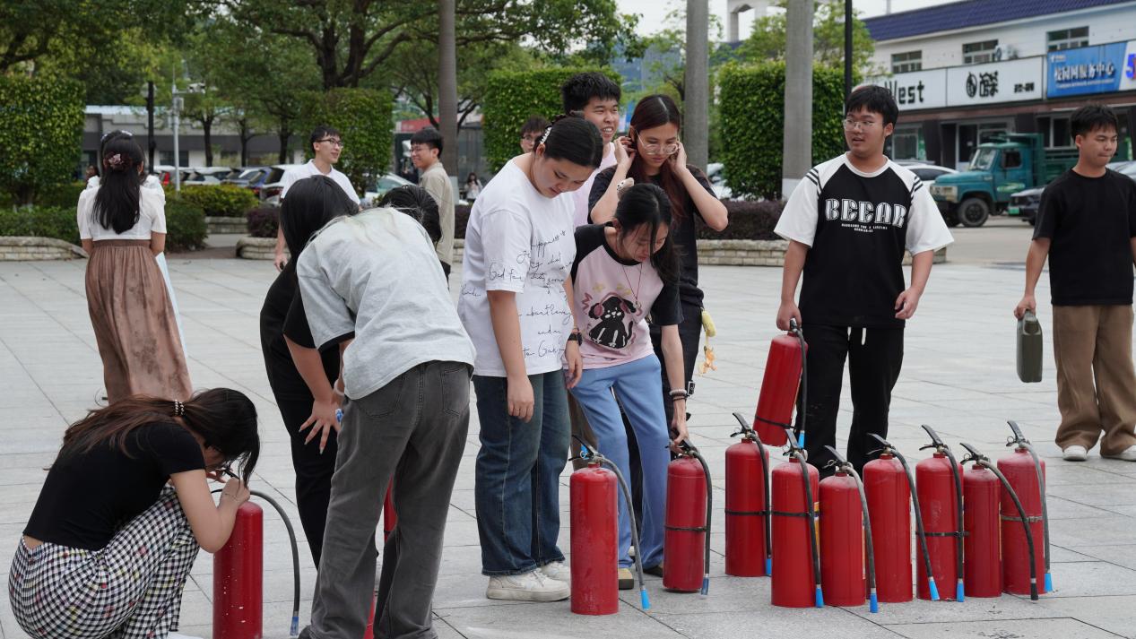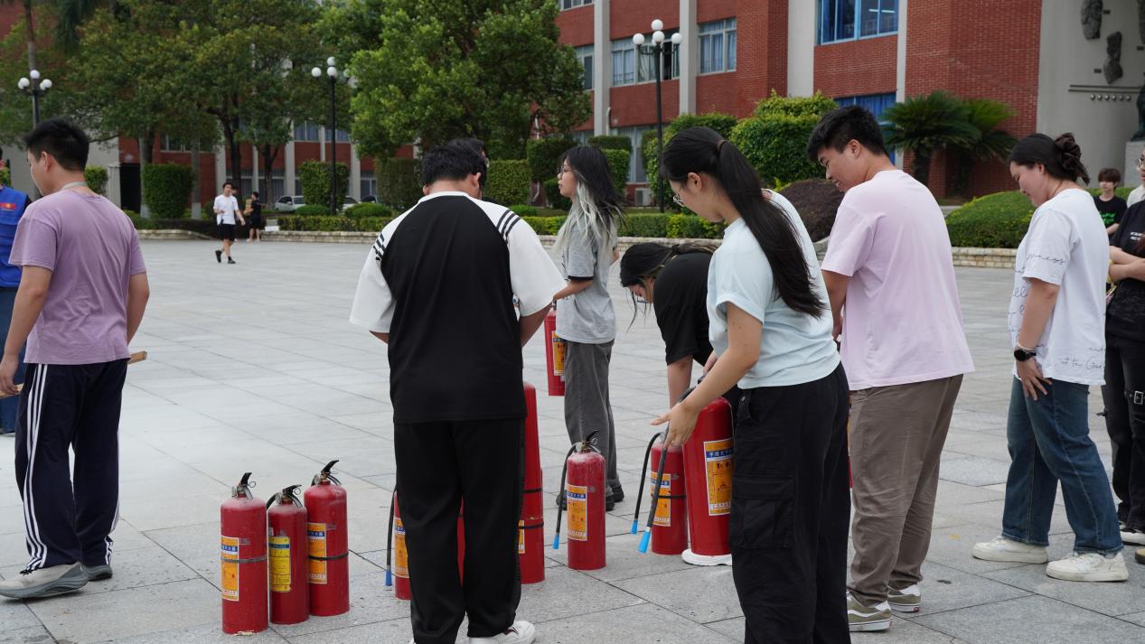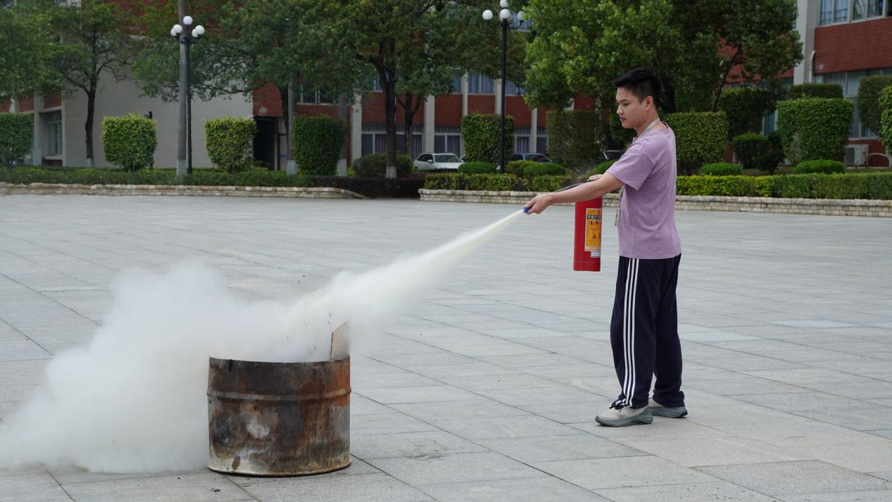 全體演練人員到達(dá)綜合樓廣場一樓空曠處后,由保衛(wèi)處老師教大家如何正確使用滅火設(shè)備,并組織師生進(jìn)行消防滅火設(shè)備實(shí)戰(zhàn)操作。