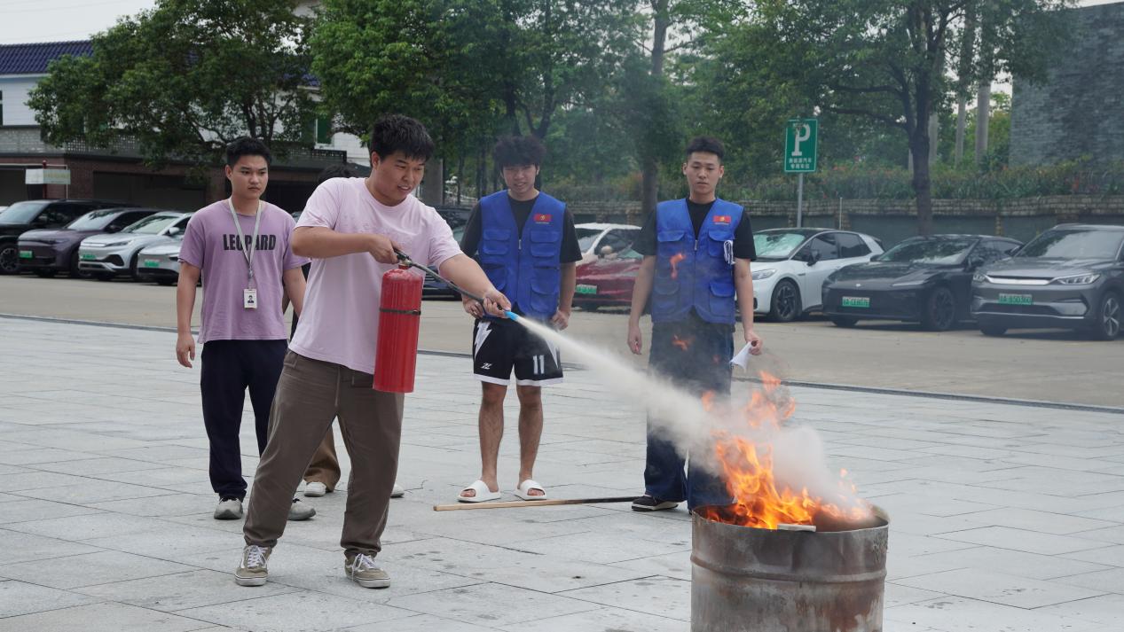 保衛(wèi)處老師進(jìn)行消防滅火設(shè)備的使用講解與示范