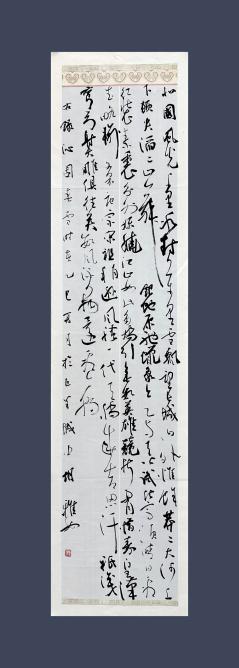 作品以經典詞牌《沁園春?雪》為底文,以草書條幅形式揮毫創(chuàng)作。線條遒勁流暢、開合有度,墨色濃淡相間、干濕有致,既彰顯了扎實的書法功底與藝術審美,又以“雪韻繪鄉(xiāng)村”的創(chuàng)作立意,呼應鄉(xiāng)村純凈之美與時代新顏,完美契合“多彩鄉(xiāng)村向新而行”的活動主題,意境深遠,感染力強。