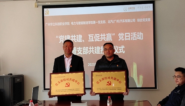 為學(xué)習(xí)貫徹黨的二十大精神,實(shí)施教育強(qiáng)國(guó)、科技強(qiáng)國(guó)、人才強(qiáng)國(guó)目標(biāo),建設(shè)學(xué)習(xí)型、服務(wù)型、創(chuàng)新型黨組織,發(fā)揮黨建在“產(chǎn)教融合、校企合作”中的引領(lǐng)作用,以教促產(chǎn)、以產(chǎn)助教,構(gòu)筑校企合作新生態(tài),凝聚黨建工作合力。電力與智能制造學(xué)院第一黨支部與我校的校企合作單位──北汽(廣州)汽車(chē)有限公司綜合管理黨支部,經(jīng)過(guò)協(xié)商決定開(kāi)展校企黨支部結(jié)對(duì)共建。