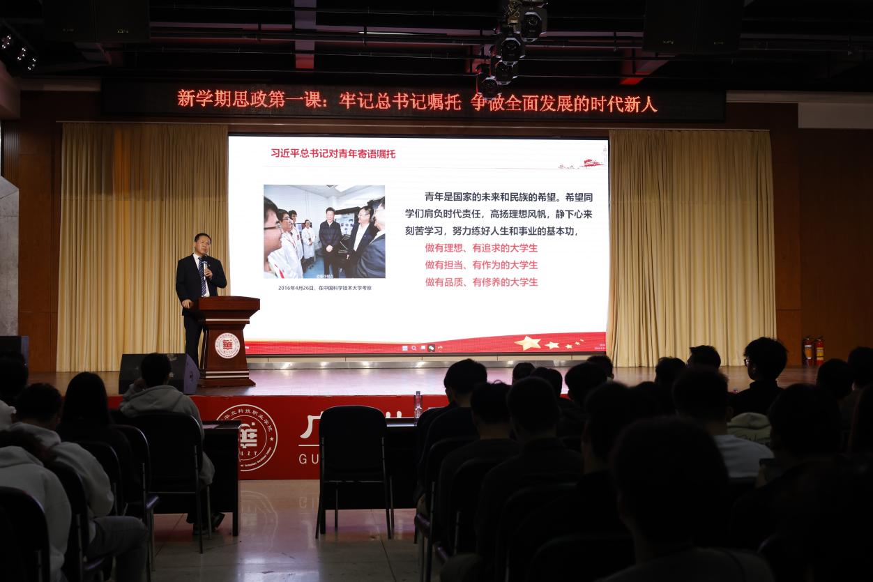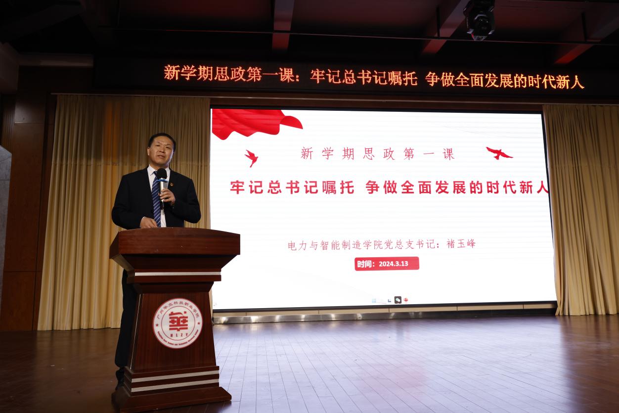 為了學(xué)習(xí)貫徹黨的二十大精神,落實(shí)立德樹人教育根本任務(wù),電力與智能制造學(xué)院黨總支按照學(xué)校黨委要求,于3月13日晚上在圖書館八樓,學(xué)院黨總支書記褚玉峰教授給全院2023級(jí)全體同學(xué)們上了題目為“牢記總書記囑托,爭做全面發(fā)展的時(shí)代新人”的思政第一課。