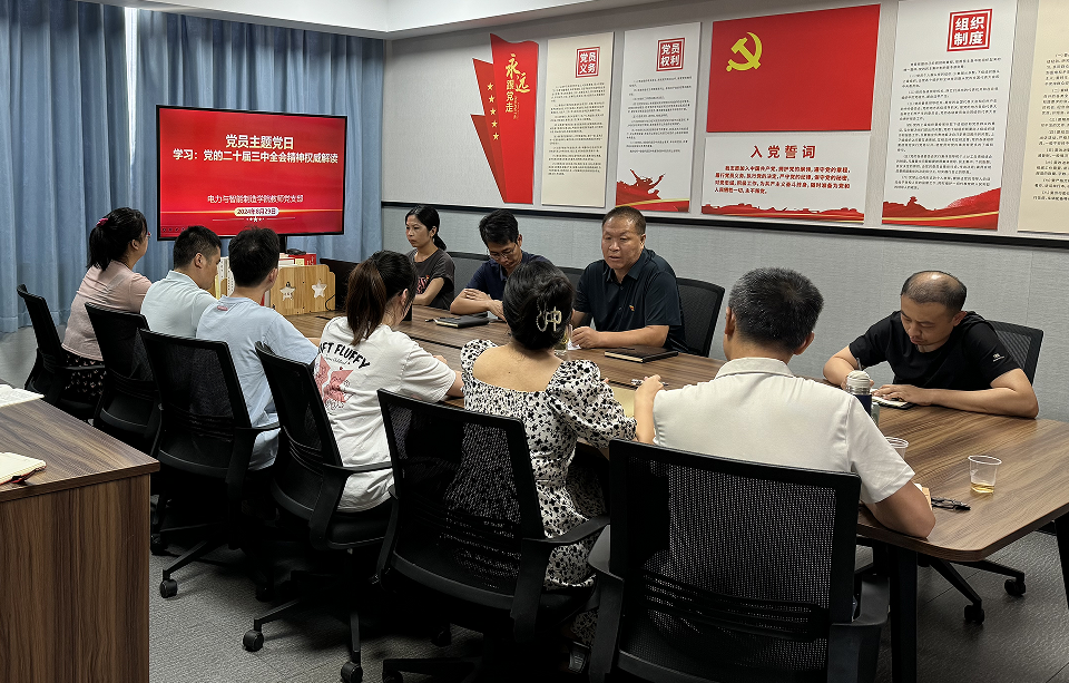 新學(xué)期教師返校后,8月29日下午,電力與智能制造學(xué)院教師黨支部組織全體教師黨員開展學(xué)習(xí)“黨的二十屆三中全會精神,學(xué)院黨總支書記褚玉峰及教師黨支部全體黨員參加了會議,會議由教師黨支部孫令真書記主持。