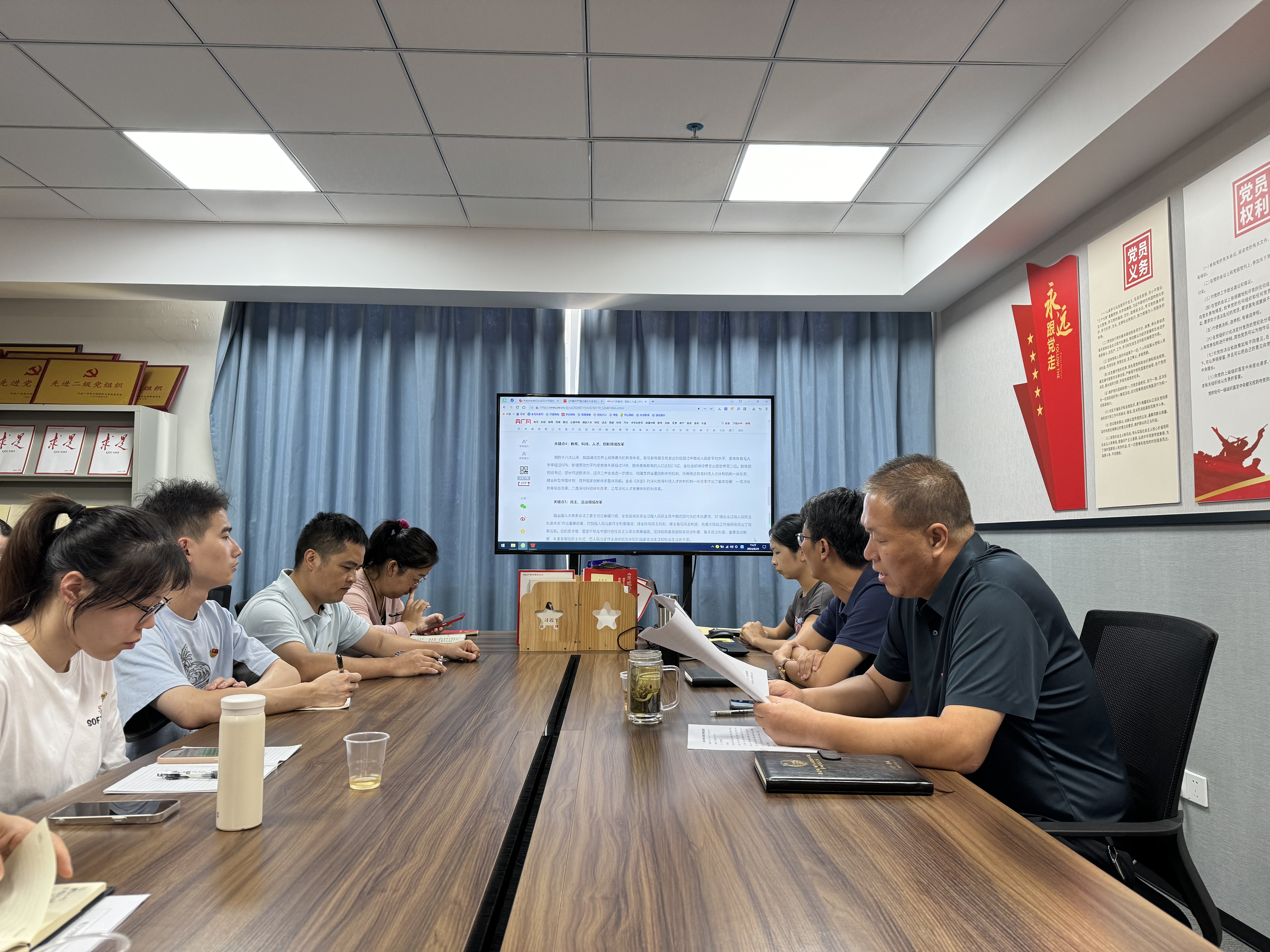 在會上,學(xué)院黨總支書記褚玉峰,對黨的二十屆三中全會精神進(jìn)行了解讀,他圍繞六個關(guān)鍵點(diǎn):一是全會最重要成果——審議通過了《中共中央關(guān)于進(jìn)一步全面深化改革、推進(jìn)中國式現(xiàn)代化的決定》;二是新時代全面深改重大成就,進(jìn)一步全面深改總目標(biāo)和原則;三是經(jīng)濟(jì)、民生領(lǐng)域改革;四是教育、科技、人才、創(chuàng)新領(lǐng)域改革;五是民主、法治領(lǐng)域改革;六是加強(qiáng)黨的領(lǐng)導(dǎo)和深化黨的建設(shè)制度改革等內(nèi)容進(jìn)行解讀。