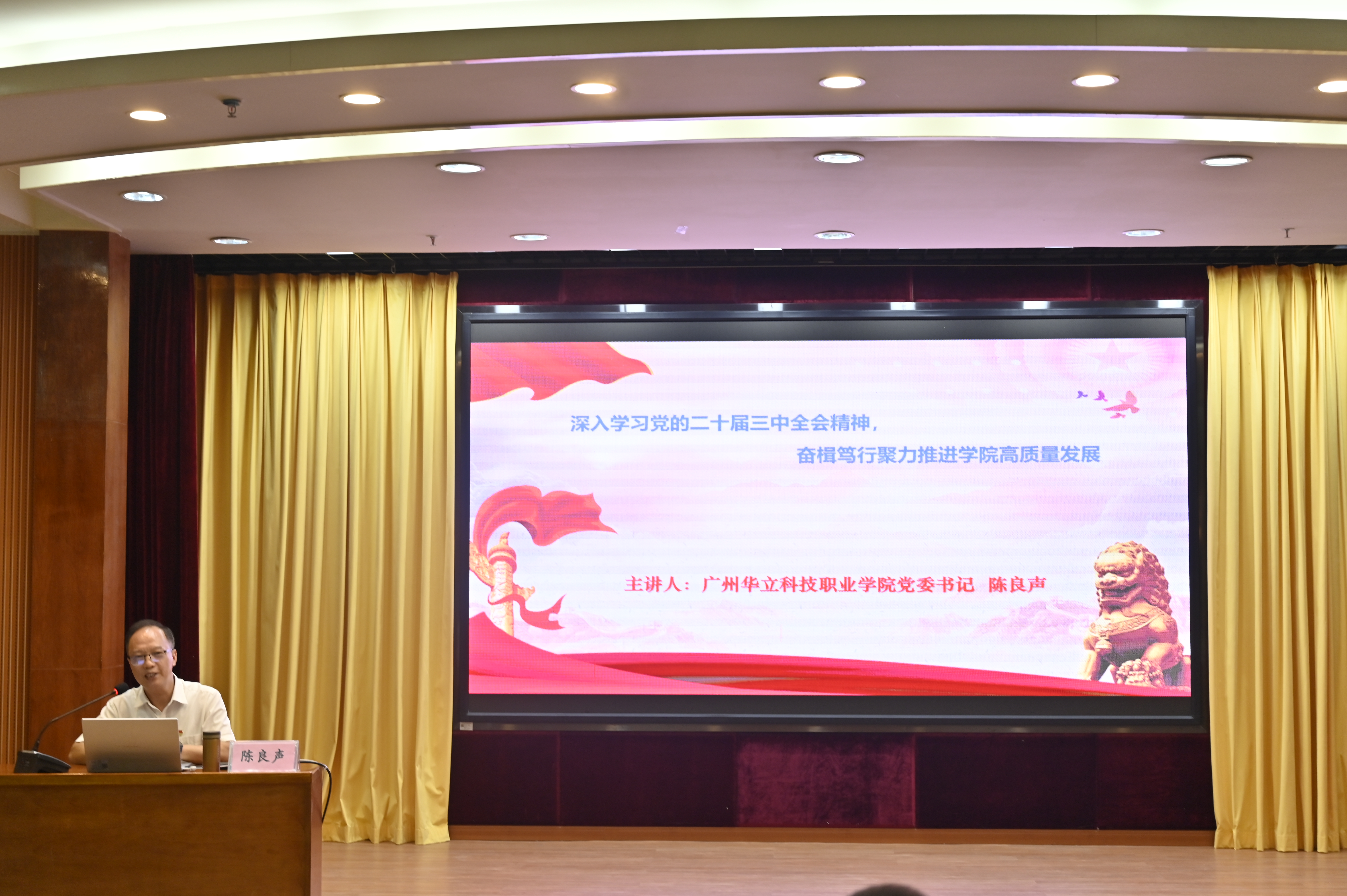 在貫徹全會精神上,陳書記希望老師們按習近平總書記“四有好老師”、“四個引路人”的重要指示,大力弘揚教育家精神,做新時代的好老師;希望同學們立大志、明大德、成大才、擔大任,堅定不移聽黨話、跟黨走,爭做有理想、敢擔當、能吃苦、肯奮斗的新時代好青年。陳書記還結(jié)合學校實際,提出要以黨建質(zhì)量創(chuàng)優(yōu)為主線,以“八個聚焦”為抓手,全面推進學院高質(zhì)量發(fā)展。