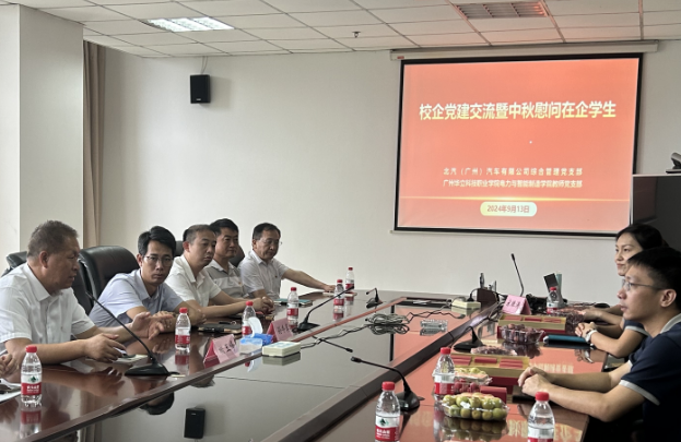 學(xué)院教師黨支部與北汽(廣州)汽車有限公司綜合管理黨支部是黨建結(jié)對共建單位。在中秋佳節(jié)到來之際,9月13日上午,學(xué)院教師黨支部書記孫令真帶領(lǐng)學(xué)院沒有課的8位黨員教師,到北汽(廣州)汽車有限公司進行黨建交流學(xué)習(xí)和中秋慰問在企學(xué)生。學(xué)院黨總支書記褚玉峰,北汽(廣州)汽車有限公司綜合管理黨支部副書記黃建安、人力運營經(jīng)理李婷婷、人事員陳晶及我校在企學(xué)生代表參加了會議。