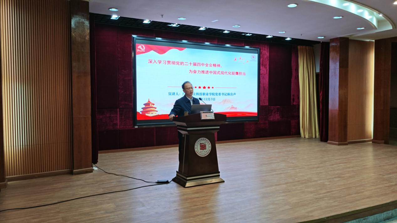 12月3日下午,在學(xué)校東區(qū)圖書館一號(hào)報(bào)告廳,學(xué)校黨委書記陳良聲以“深入學(xué)習(xí)貫徹黨的二十屆四中全會(huì)精神,為奮力推進(jìn)中國(guó)式現(xiàn)代化挺膺擔(dān)當(dāng)”主題,為電力學(xué)院300余名師生宣講黨的二十屆四中全會(huì)精神。