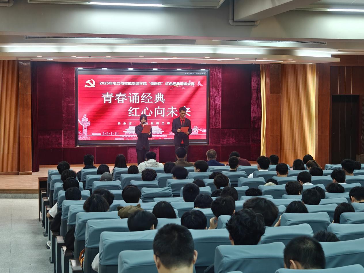 為貫徹落實黨的二十大精神,傳承紅色基因,賡續(xù)紅色血脈。12月18日,電力與智能制造學(xué)院舉辦了以“青春誦經(jīng)典,紅心向未來”為主題的“儒雅杯”紅色精典誦讀大賽。參加本次大賽的有:學(xué)院黨總支書記褚玉峰,黨總支專職副書記、學(xué)管主任鄭理廣,團委書記王明偉,學(xué)生黨建工坊指導(dǎo)老師王凱,25級輔導(dǎo)員以及學(xué)生代表,大賽由學(xué)院學(xué)生黨建工坊承辦。