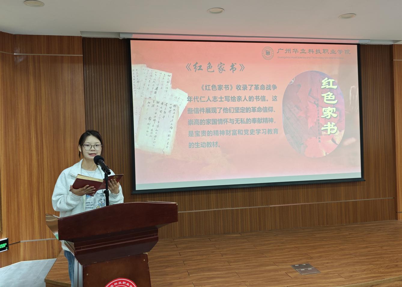 本次讀書分享會前期經(jīng)過為期兩周的廣泛征集與精心選拔,共有五位同學進入現(xiàn)場分享環(huán)節(jié)。25級無人機4班楊嘉麗同學分享《紅色家書》,她講到在革命志士的家書里,藏著“舍小家為大家”的奉獻精神,這正是電力人“堅守崗位、點亮萬家”的初心寫照,讓我讀懂了“奉獻”二字的重量?!?/span>
