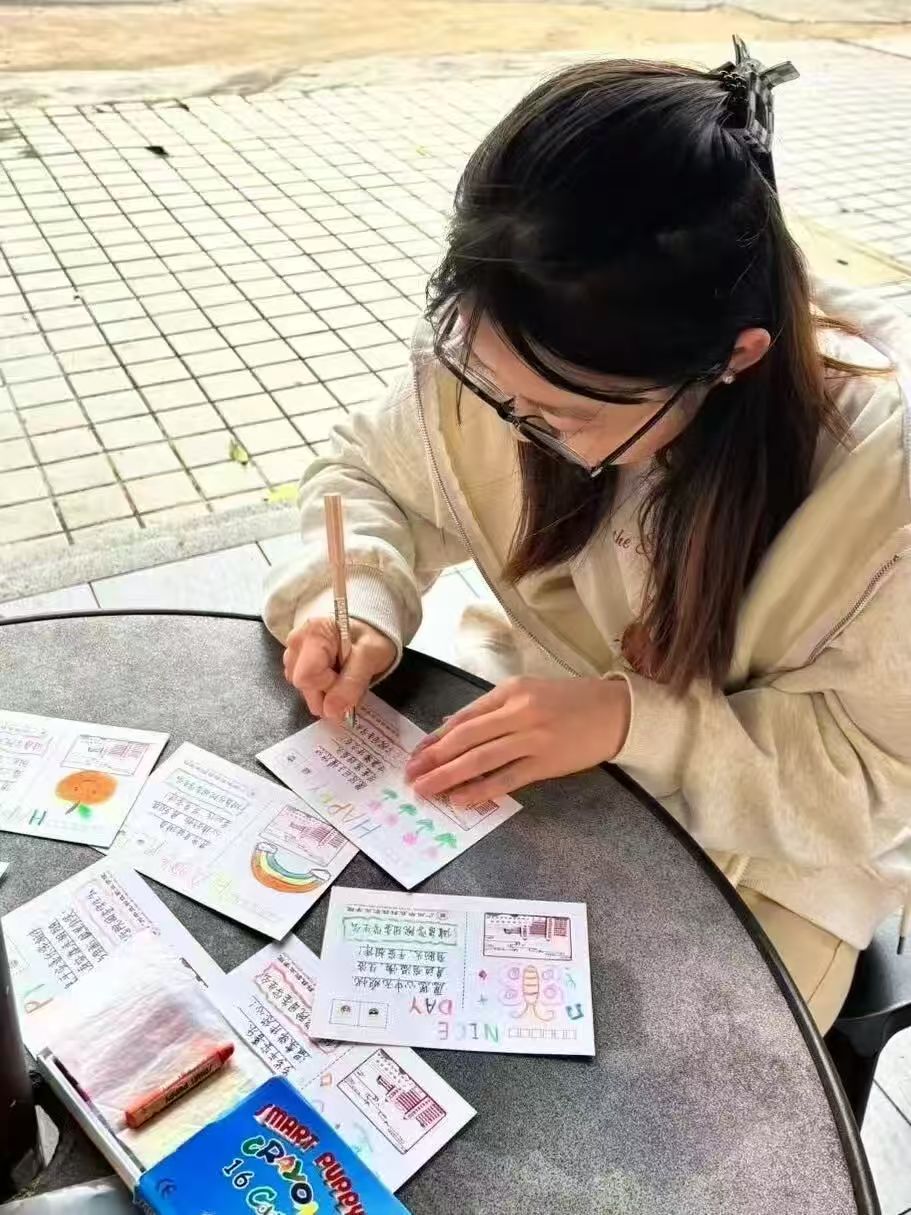 義診服務(wù)結(jié)束后,志愿者們將親手制作的賀卡送到每一位老人手中。一張張色彩鮮艷、充滿童趣的賀卡上,寫滿了真摯的祝福語,有的祝愿老人身體康健、福壽綿長,有的期盼老人天天開心、笑口常開,字里行間滿是晚輩對長輩的敬愛與關(guān)懷,讓濃濃溫情在指尖傳遞。